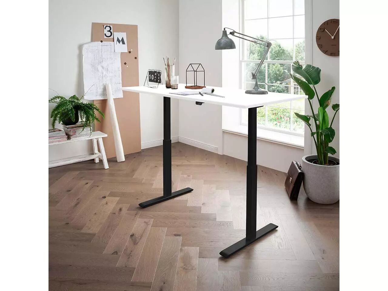 Les plateaux en bois massif sont fabriqués en Allemagne, les piétements motorisés en Suède.