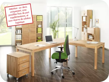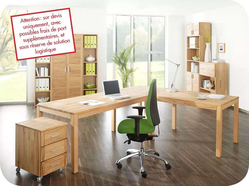 Chaque pièce est unique : ce bureau en cœur de hêtre massif fait entrer un peu de nature dans votre maison ! Pour encore plus de surface de travail, il peut être complété avec l'élément d'angle équipé d'un pied (80 x 80 cm), et combiner ainsi plusieurs bureaux. Hauteur du bureau 75 cm, pieds 6 x 6 cm, plateau 2,3 cm d'épaisseur.