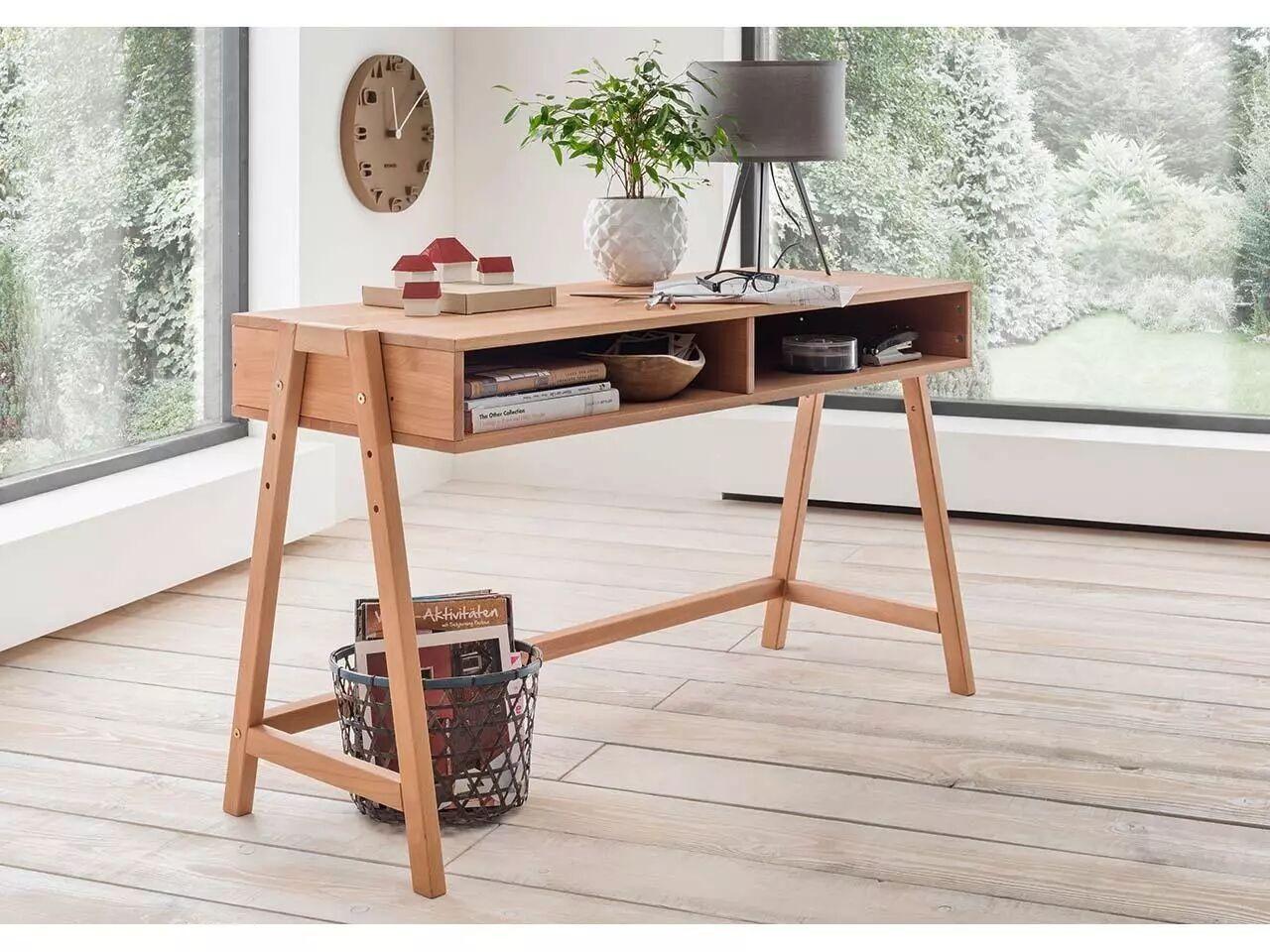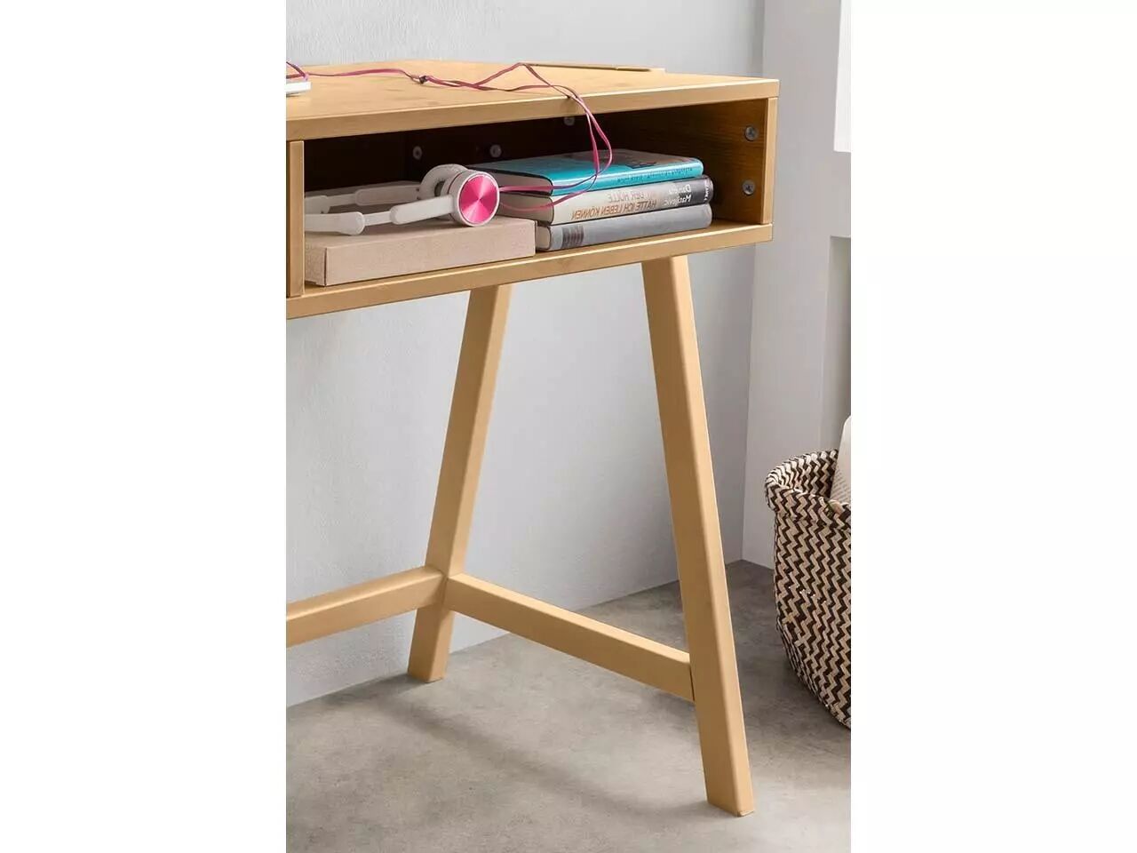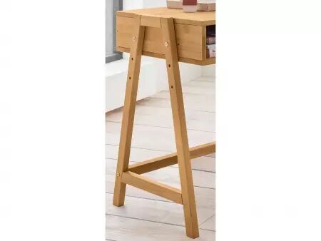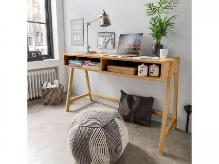 Design minimaliste et moderne pour ce bureau réglable en hauteur (60, 67,5 et 75 cm) : vous pouvez l'adapter exactement à vos besoins. Deux grands compartiments de rangement permettent d'avoir un bureau toujours bien rangé. Grâce à sa faible profondeur, le bureau s'adapte également aux petites pièces. Disponible en pin brossé blanc ou lessivé, et en hêtre huilé. L126 x P50 cm.