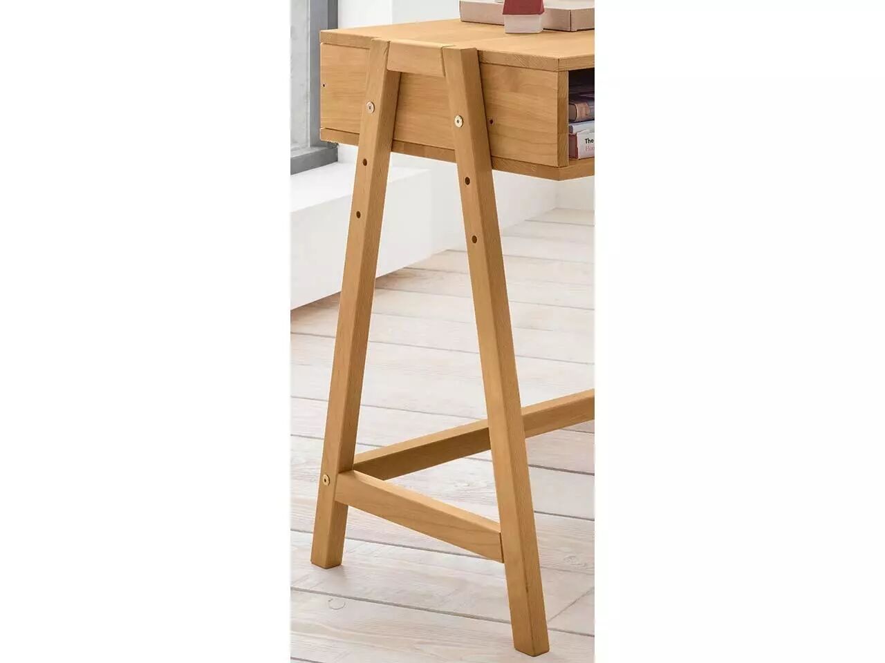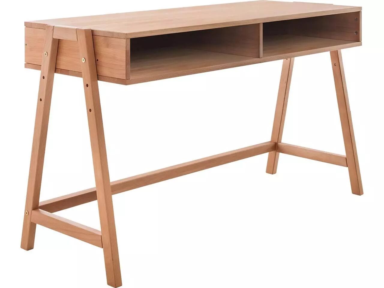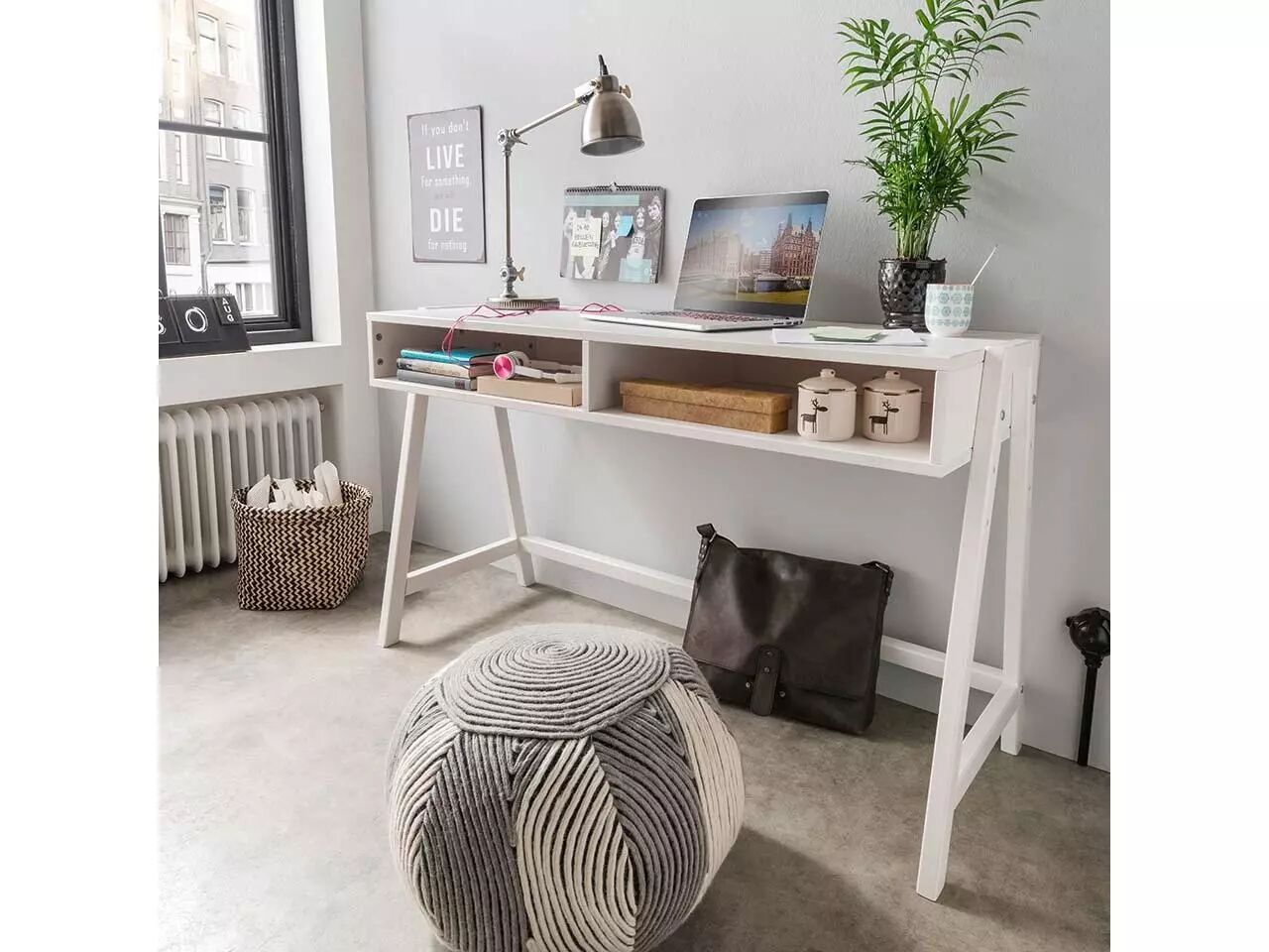 Design minimaliste et moderne pour ce bureau réglable en hauteur (60, 67,5 et 75 cm) : vous pouvez l'adapter exactement à vos besoins. Deux grands compartiments de rangement permettent d'avoir un bureau toujours bien rangé. Grâce à sa faible profondeur, le bureau s'adapte également aux petites pièces. Disponible en pin brossé blanc ou lessivé, et en hêtre huilé. L126 x P50 cm.