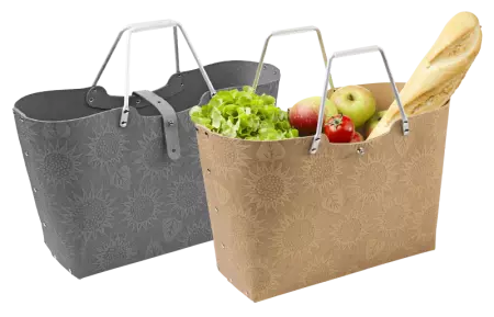 Un sac cabas pratique, stylé, solide - et bon pour l'environnement ! Ce cabas élégant est fabriqué avec des chutes de cuir, qui sont moulues et recyclées en un nouveau matériau. Très agréable à prendre en main, ses poignées sont en aluminium et munies de protections en polypropylène. Six pieds métalliques sont présents dessous, et dispose d'un système de fermeture réglable.