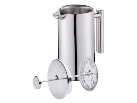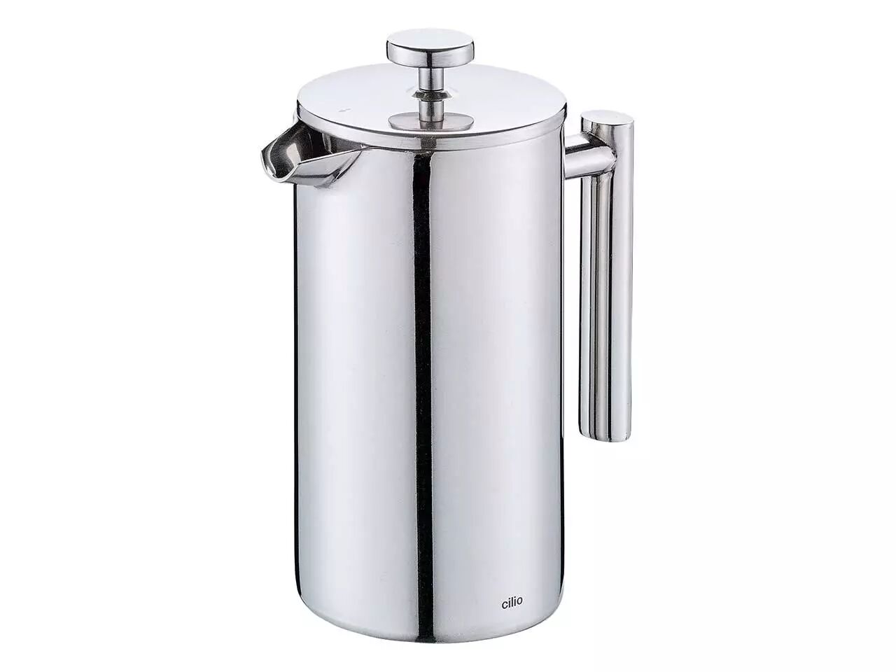 Jolie cafetière à piston à double paroi. Du bon café moulu, de l'eau chaude et la cafetière à piston «?SARA?» de cilio : c'est tout ce dont vous avez besoin pour obtenir un goût unique. Son utilisation est très simple : versez-y une cuillère à café bombée de café moulu par tasse avec de l'eau chaude, mais pas bouillante. Ensuite, mettez le couvercle avec l'insert à tamis et attendez quatre minutes. Pressez lentement le filtre vers le bas, puis dégustez votre café. Vous pouvez également préparer du thé avec cette cafetière en acier inoxydable robuste à double paroi. Capacité de 1 l.