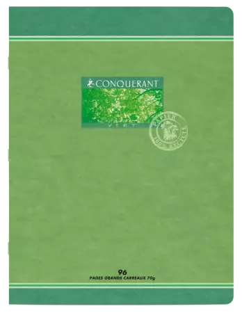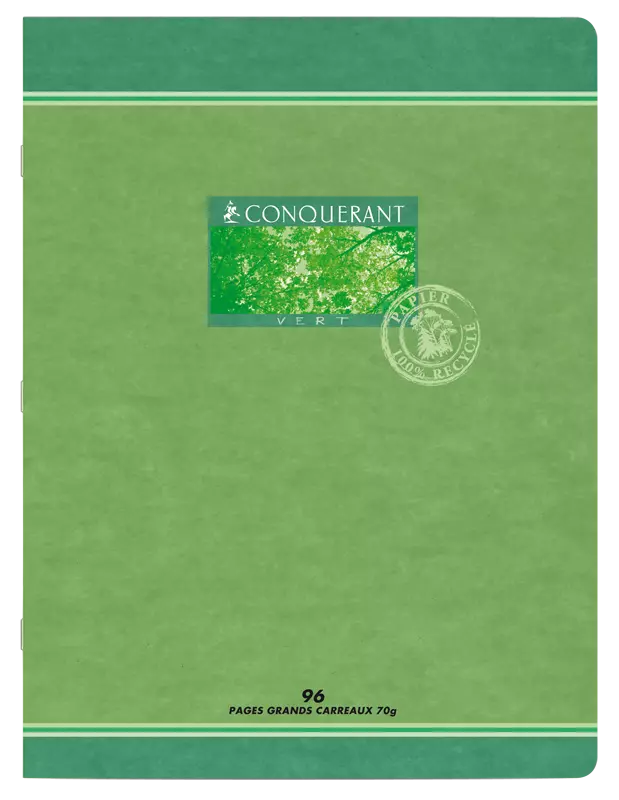 Le grand cahier recyclé Conquérant Vert 24 x 32 cm grands carreaux.