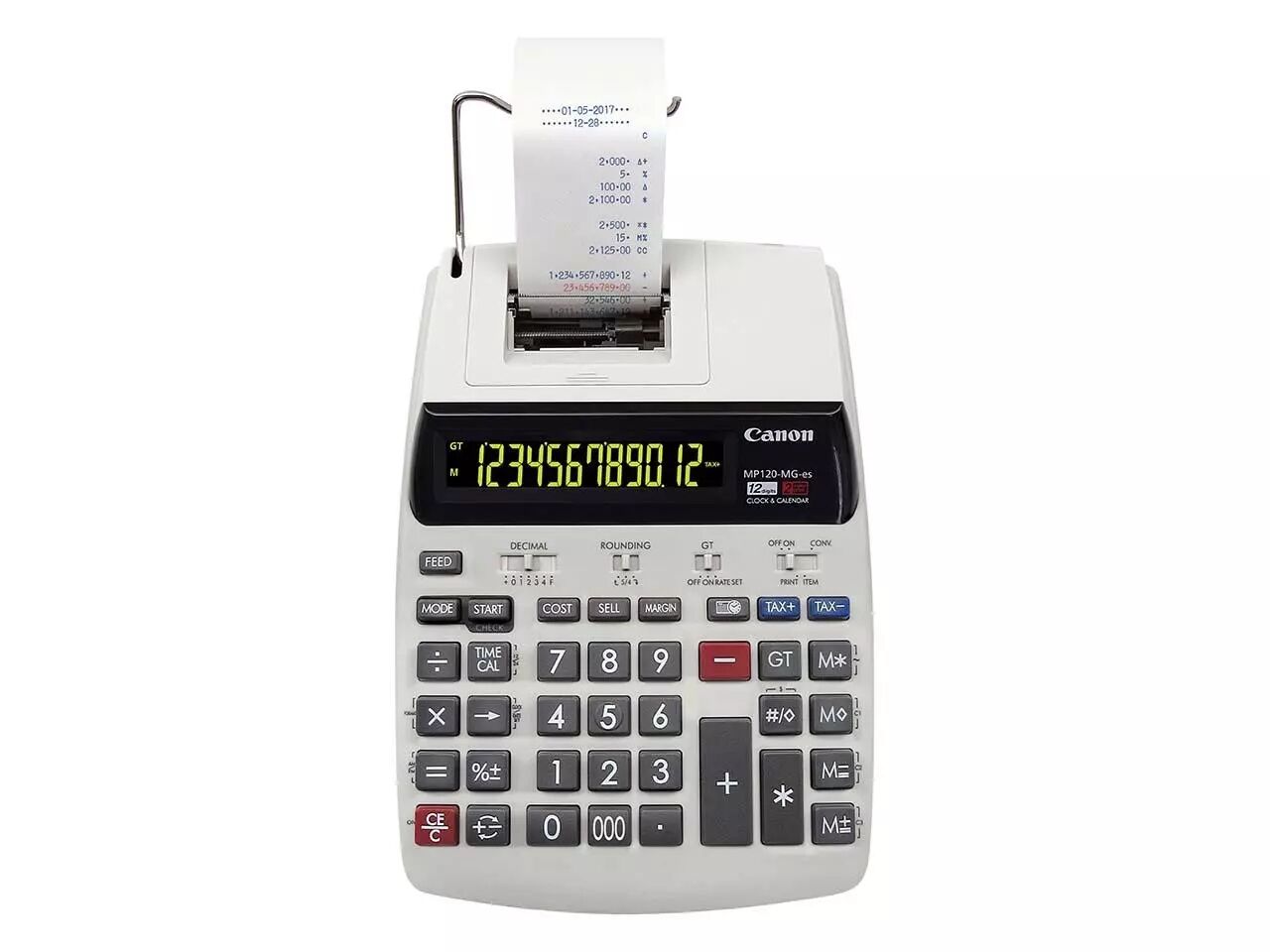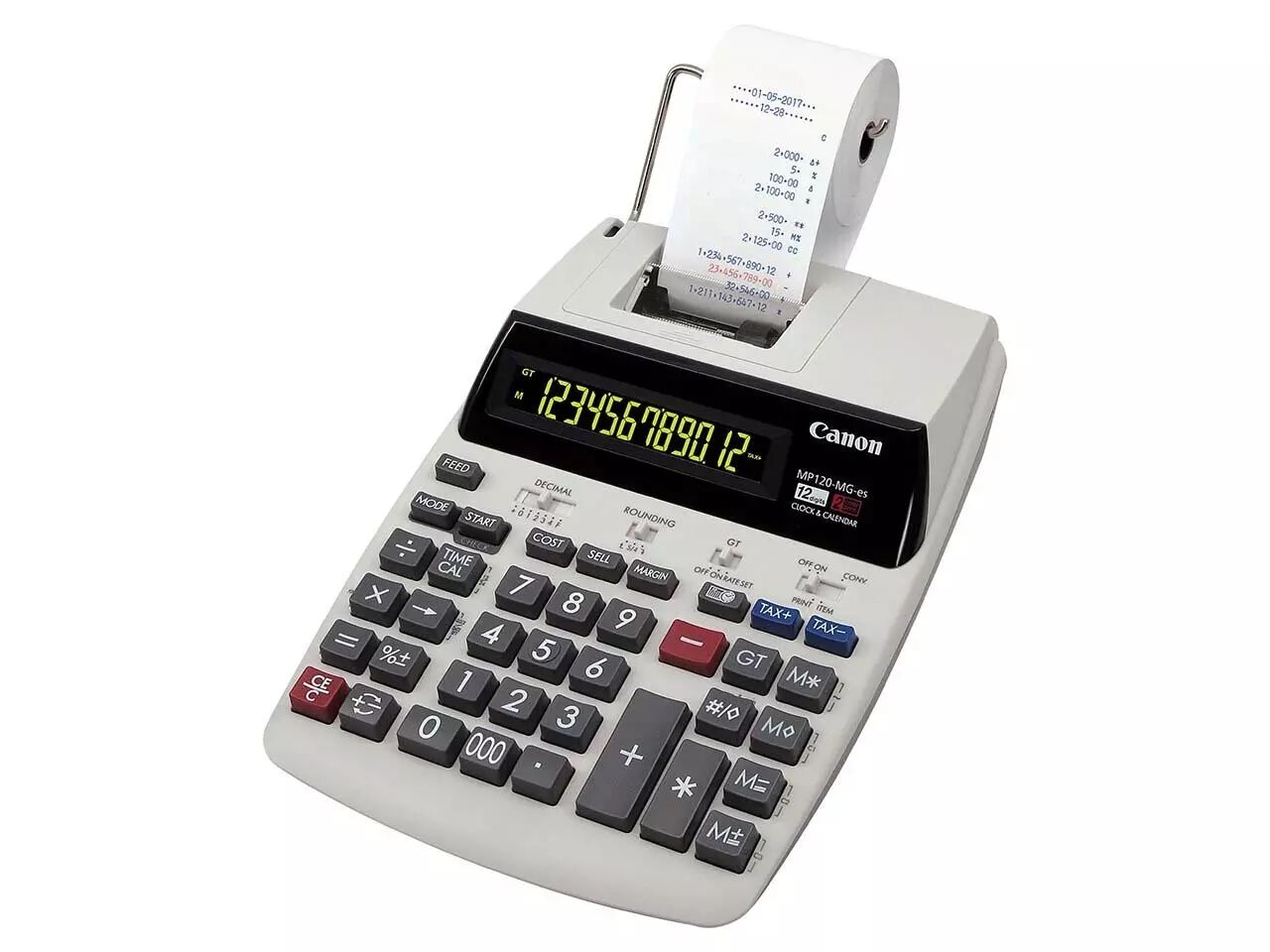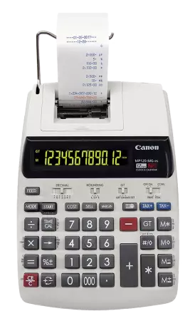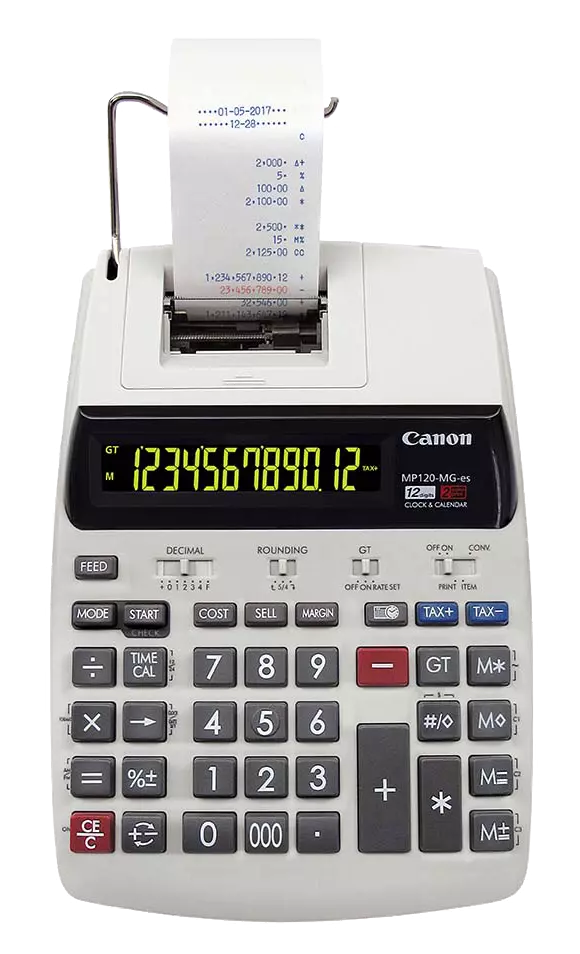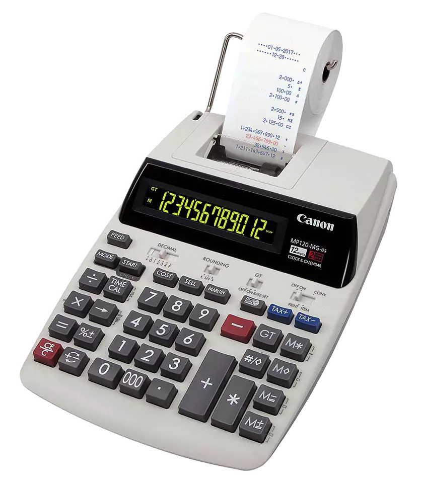 Les grands frères performants de la série de calculatrices de tables Canon font forte impression même dans la durée : grâce à son rouleau encreur, l'appareil imprime en une ou deux couleurs (valeurs positives en noir, négatives en rouge). Les touches ergonomiques et le grand écran à 12 chiffres facilitent le quotidien au travail. Une fonction commerciale, calcul des taxes et conversion affiche les valeurs voulues en un clin d'œil. Avec affichage et impression de la date et de l'heure, mémoire des totaux et trois décimales. Comme chez leurs petites sœurs « Think Green », les composants du dessus et du dessous du corps sont fabriqués à 100% à partir de matières recyclées issues de photocopieuses Canon usagées ! Alimentation secteur, pas de consommation de veille lorsque l'appareil est éteint.