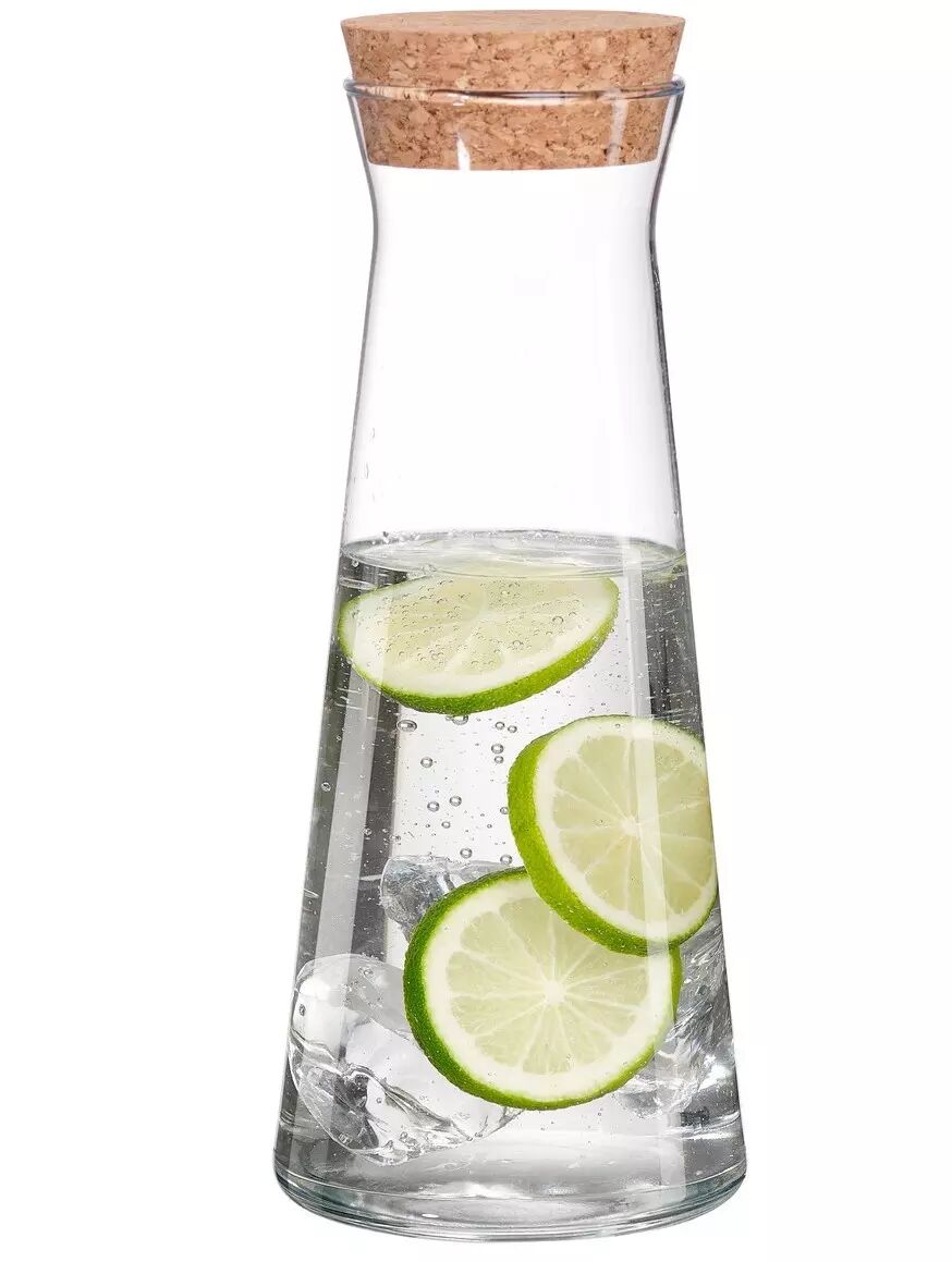Naturellement élégant, la carafe conserve l'eau, les jus ou le thé glacé au frais. Elle est non seulement décorative à la maison ou au bureau, mais elle est également « adapté à l'extérieur » car le bouchon en liège naturel protège le contenu des insectes et autres intrus.