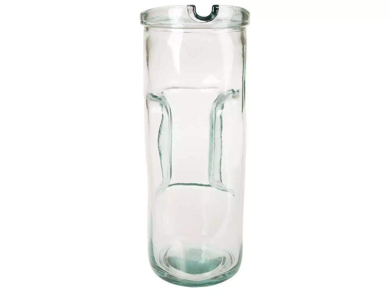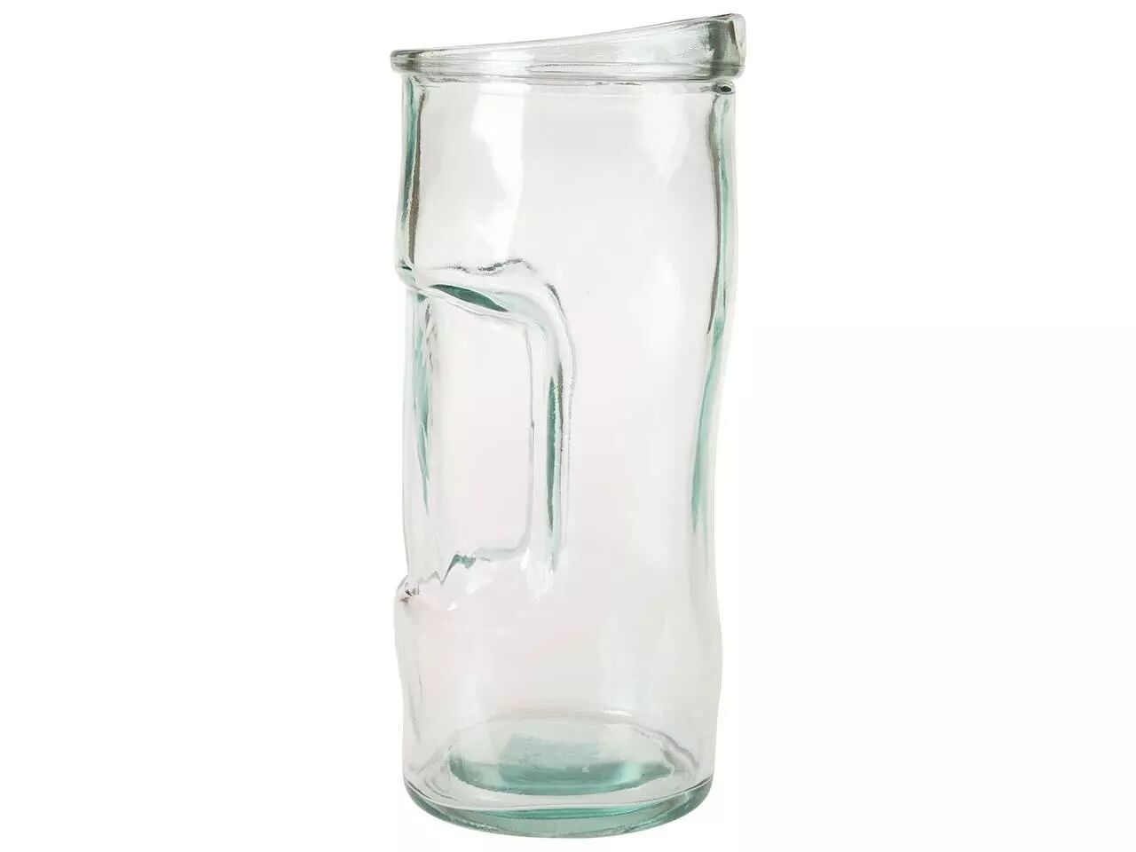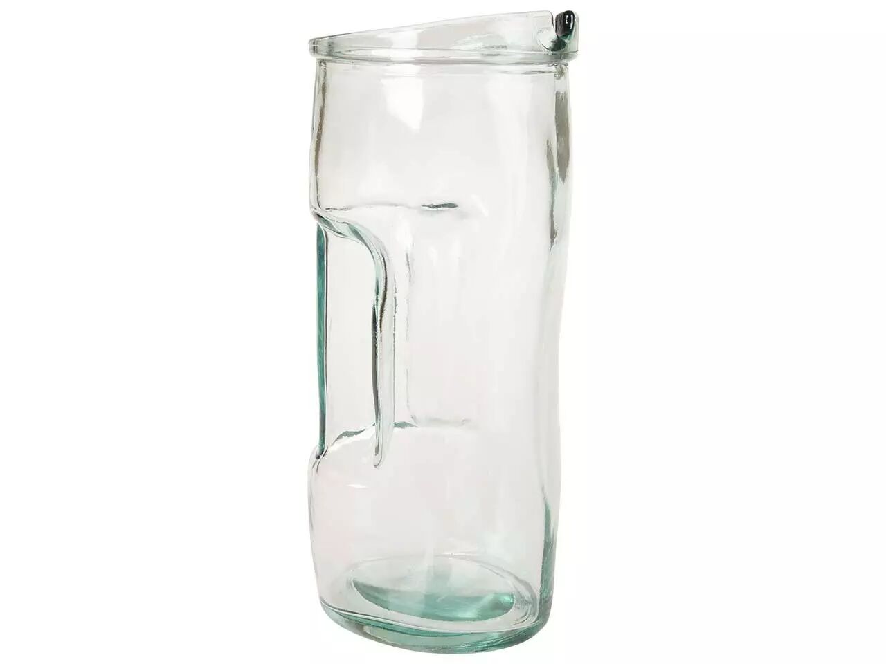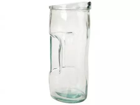 La carafe surprend par sa forme légèrement ovale et sa poignée en creux dans le corps de la carafe plutôt qu'en saillie comme c'est classiquement le cas. H 25,5 cm, capacité 1,35 l.