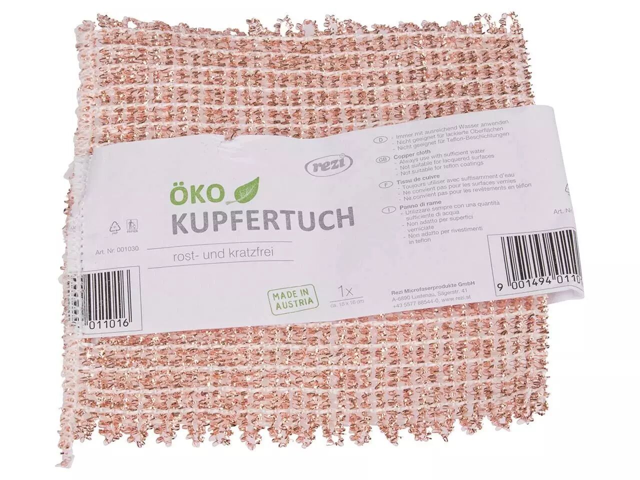 Un nettoyage abrasif sans rayures dans la cuisine et pour le ménage avec ce chiffon additionné de cuivre Rezi "Premium". Le cuivre est un métal assez tendre pour dissoudre la saleté efficacement mais en douceur, même lorsqu'elle est tenace. Le chiffon spécialement tissé à partir de polyéthersulfone (PES) et cuivre convient au nettoyage des poêles, casseroles, plaques vitrocéramiques, vitres, carrelages et pierres (ne pas utiliser sur les articles vernis ou revêtu de téflon). Un nettoyage classique à l'éponge nécessitent souvent l'ajout de détergeants chimiques, alors que ce chiffon au cuivre ne nécessite que de l'eau : vous préservez ainsi l'environnement. Ce chiffon au cuivre est lavable en machine jusqu'à 60 °C (sans assouplissant).