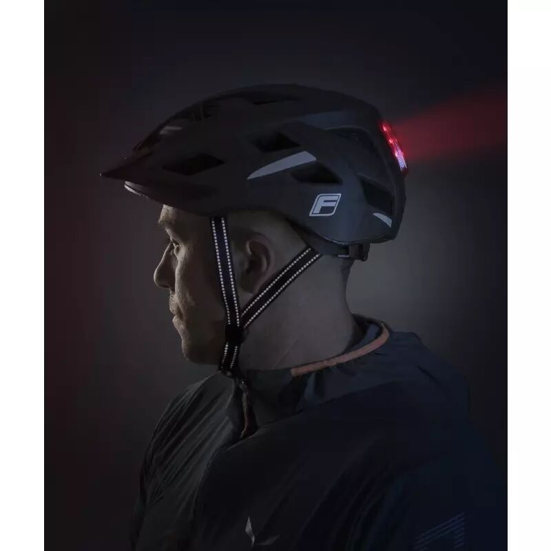 Cette nouvelle série de casques a été spécialement conçue pour une meilleure protection. Une coque extérieure en polycarbonate extrêmement stable et une coque intérieure en EPS à haute résistance protègent votre tête de manière fiable. Tandis que les bandes réfléchissantes sur le casque, un grand feu arrière lumineux avec trois fonctions d'éclairage différentes et un système de boucles d'attache réfléchissantes assurent une meilleure visibilité dans la circulation.