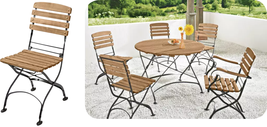 Des meubles ravissants au charme plein de nostalgie : ce salon de jardin pliant de qualité séduit par son excellent rapport qualité-prix. Fabriqué en Europe avec du bois de robinier lasuré certifié FSC®. Toutes les pièces métalliques et les ferronneries sont entièrement galvanisées contre la rouille et thermolaquées en noir. Les éléments en bois sont remplaçables.