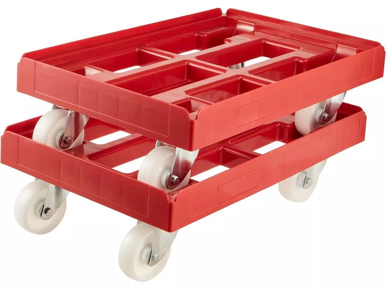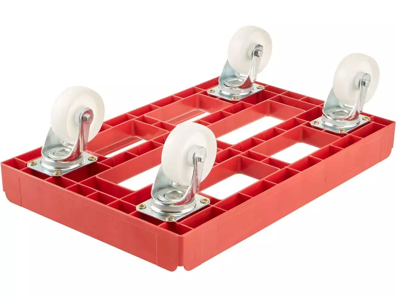 Ce chariot de transport en polyéthylène, à 4 roues pivotantes (360°C) vous permettra de déplacer des bacs de rangement sans effort. Le cadre peut supporter une charge allant jusqu'à 300 kg. Format L41 x P61 cm.