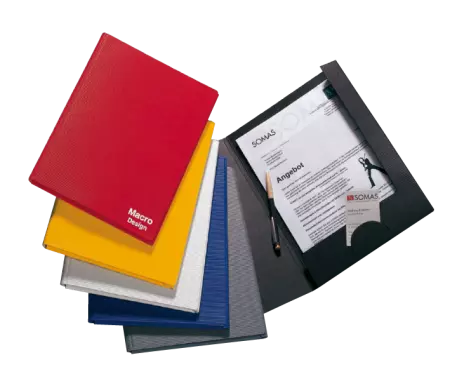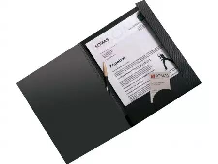 Chemise de présentation en carton recyclé, avec deux rabats. Intègre une fente pour carte de visite. Solide carton recyclé de 1,2 mm d'épaisseur, avec label Ange bleu. Pour format A4, capacité d'environ 1 cm. Dimension L31,5 x P22,5 cm. Disponible en 5 couloris.