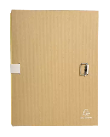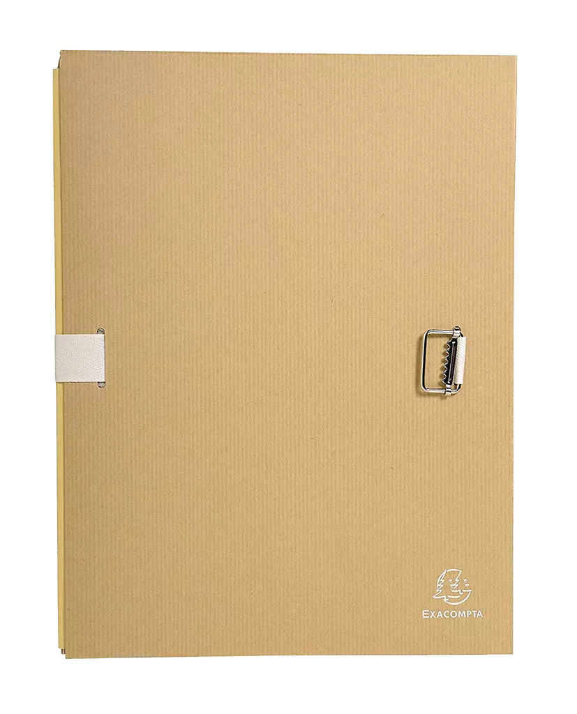 Chemise extensible en carton, habillé d'un papier décors kraft. Chemise robuste, en carton d'épaisseur 26/10. Fermée grâce à sa sangle et sa boucle en acier. Format 24 x 32 cm (convient au classement de documents format A4). La chemise est extensible jusqu’à 13cm. Fabriquée en France.