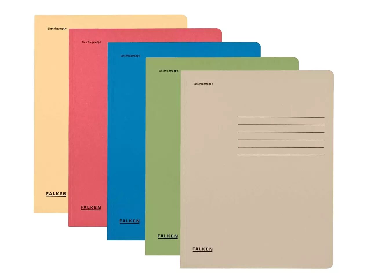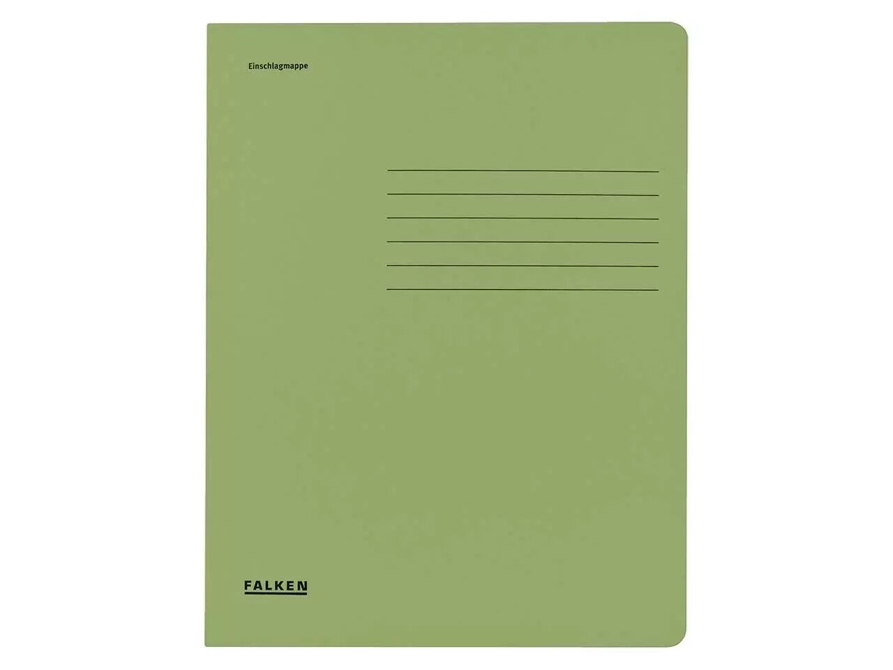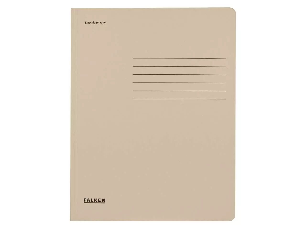 Chemise A4 en carton recyclé 320 g/m², marque Falken dotée de 3 rabats. Capacité de remplissage environ 1,5cm.