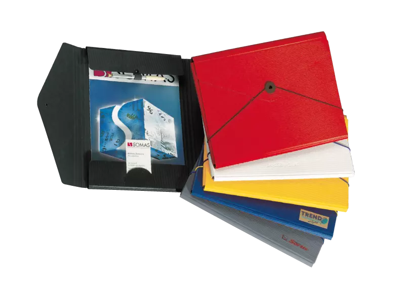 Serviettes à documents en carton recyclé disponibles en 6 couleurs.