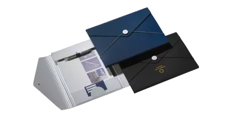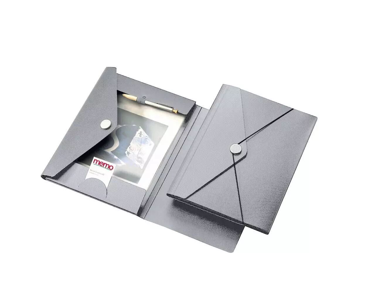 Cette chemise avec une structure en relief attractive et des fermetures originales, permet une présentation élégante de vos documents. La forte épaisseur du carton (environ 1 mm) garantit une longue durée de vie.