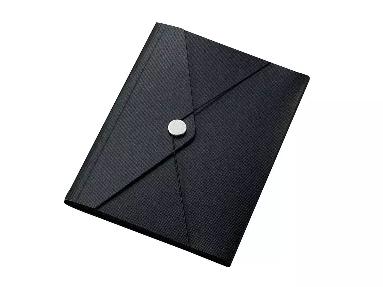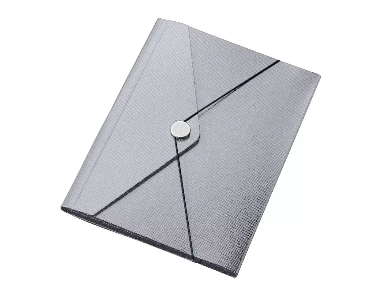 Chemise dossier 100% recyclé OPACO, label écologique « Ange Bleu » pour format A4 avec porte stylo et porte carte. Élastique de fermeture avec bouton argenté. Capacité jusqu'à 1,5 cm. Dimensions 31,5 x 24 cm.