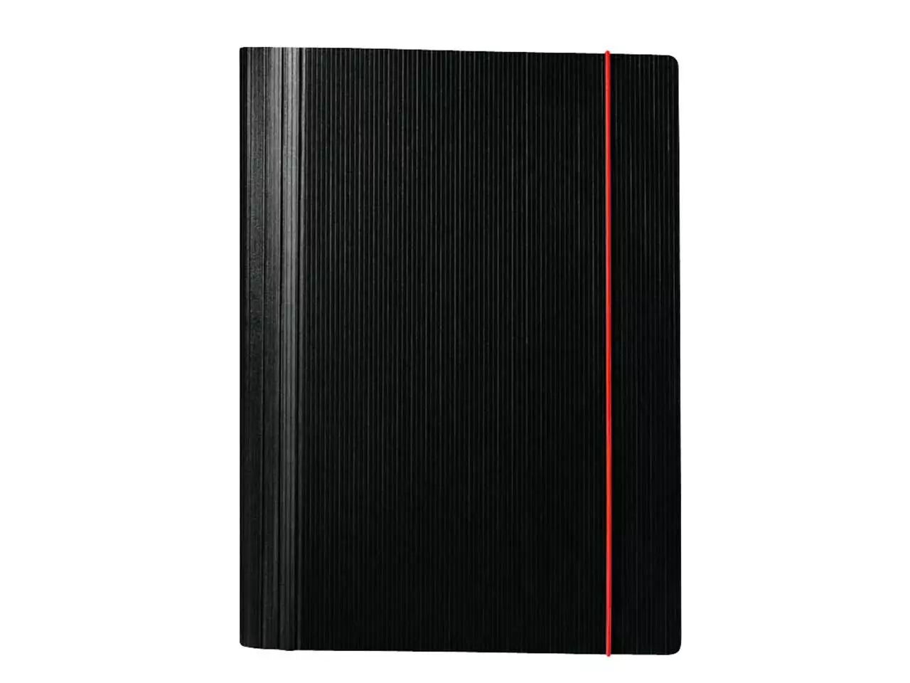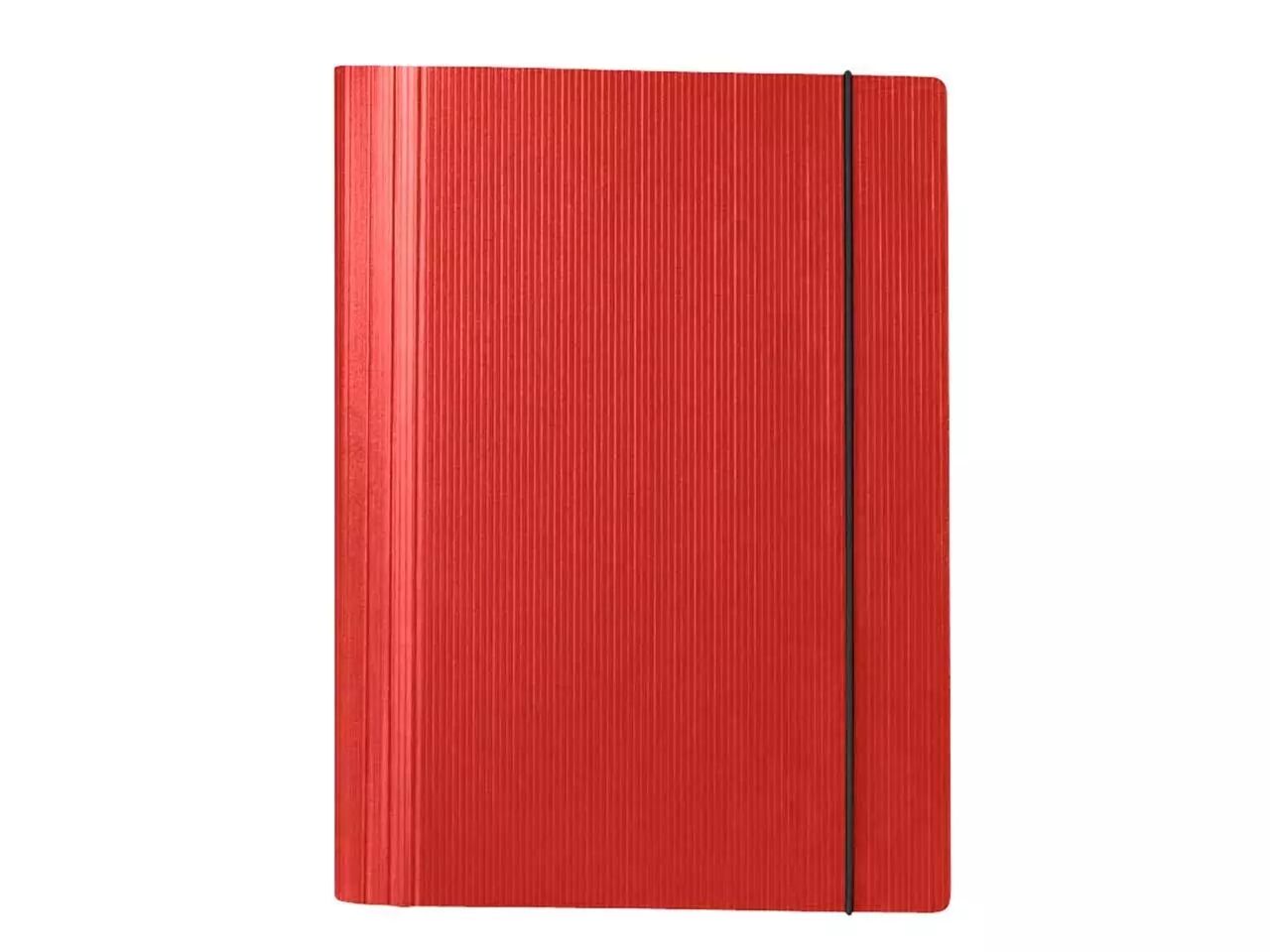 100% carton recyclé de 1 mm d'épaisseur, label « Blauer Engel ». Avec une pochette carte de visite, une fixation stylo, un rangement gauche feuilles libres A4. Pince porte-bloc à droite. Élastique de fermeture sur le recto. Format A4.