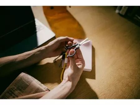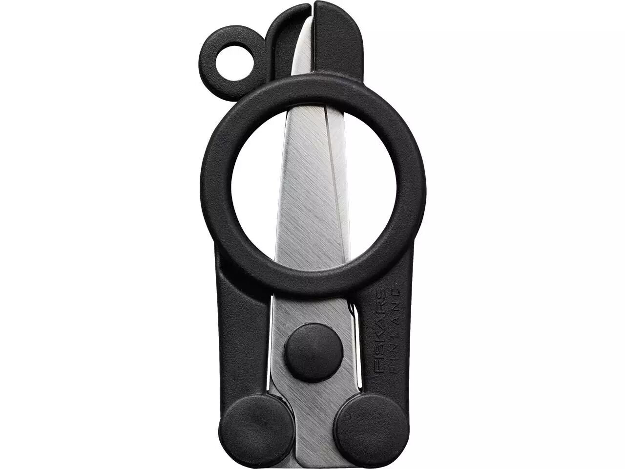 Ces ciseaux de voyage pliables ne prennent pas beaucoup de place et sont idéaux pour être emportés avec vous lors de vos déplacements - ils sont même approuvés comme bagage à main dans les avions. Grâce à l'anneau de suspension, ils peuvent être facilement attachés à votre porte-clés. Les lames tranchantes en acier recyclé sont arrondies pour un rangement sûr. Les poignées ergonomiques et pliables sont fabriquées en plastique recyclé et en fibre de verre. Cela leur confère une durée de vie particulièrement longue. En raison des différentes couleurs du matériau recyclé, chaque paire de ciseaux est unique. Longueur de lames 11 cm.