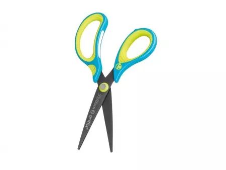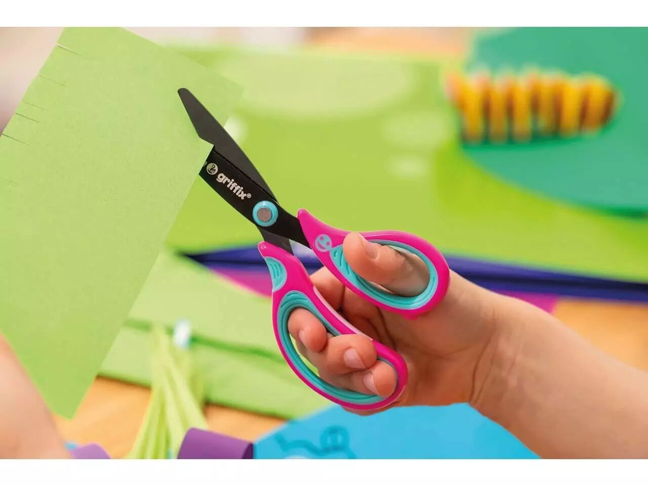 Des ciseaux au design adapté aux enfants pour l'école. Conçus pour les mains des enfants, ces ciseaux d'écoliers au design ergonomique et à la lame ronde sont parfaits pour les jeunes enfants qui maîtrisent déjà la découpe. Les ciseaux permettent de découper du papier, du carton et des matériaux similaires. Les lames robustes, sont trois fois plus dures que l'acier conventionnel grâce à leur revêtement en nitrure de titane et assurent d'excellentes propriétés de coupe. La poignée est en plastique de haute qualité, sans PVC. Pratique : un champ pour une inscription du nom est prévu sur une des poignées.