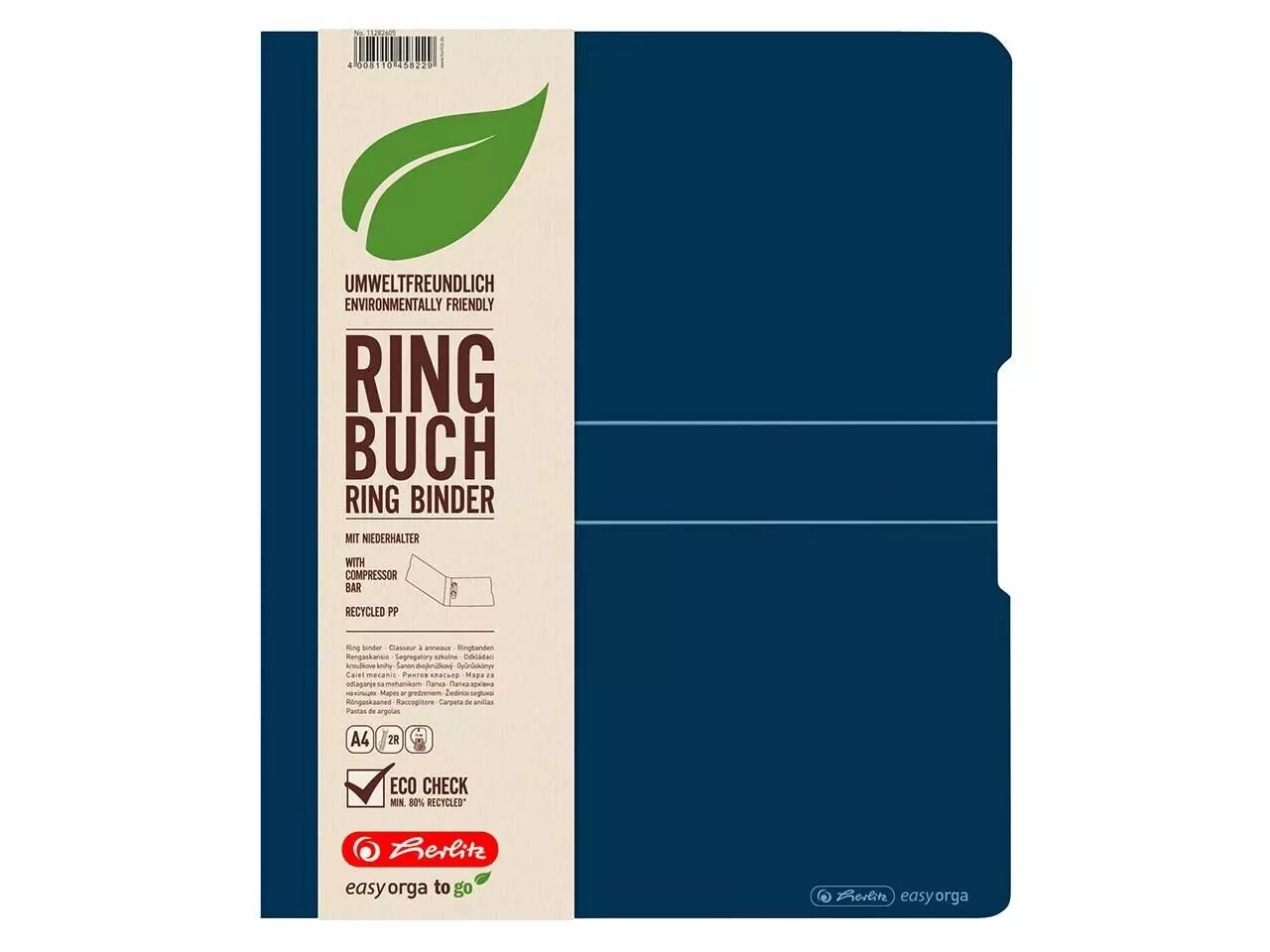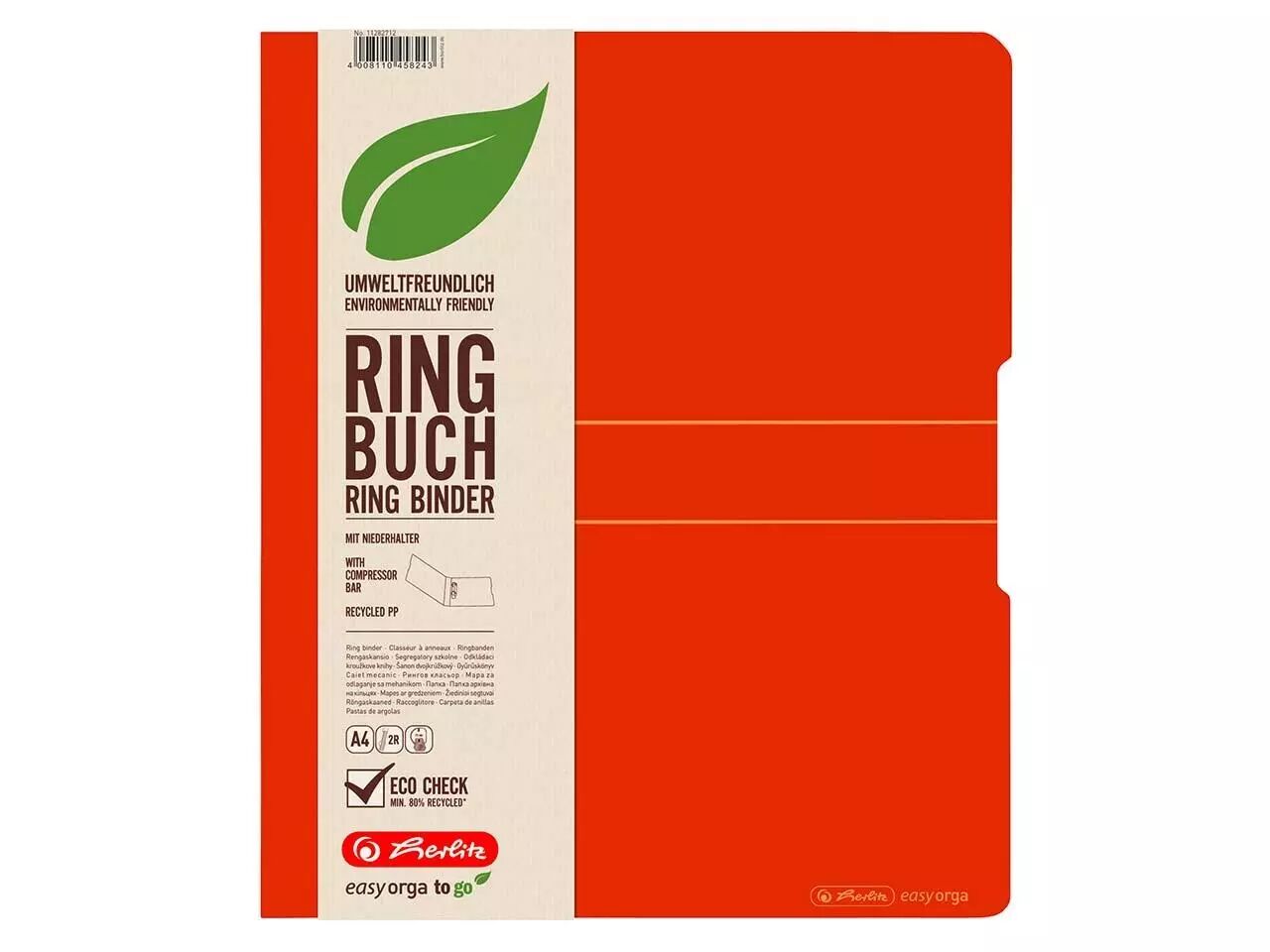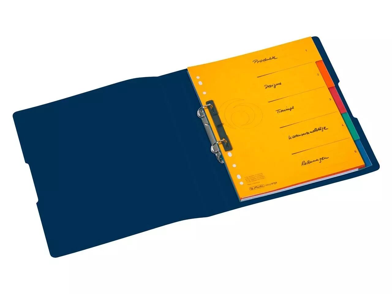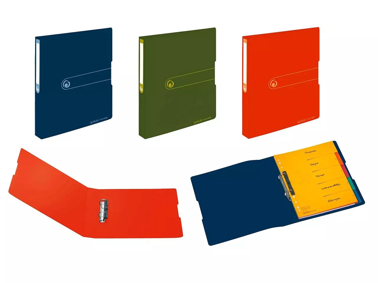 Classeur 2 anneaux «Easy orga to go», avec anneaux en D de grande qualité, équipés d'un serre page en plastique. Ce classeur est fabriqué en polypropylène recyclé, une étiquette inscriptible au dos facilite son identification. Pour format A4, largeur de dos 38 mm, diamètre de l'anneau: 25 mm.