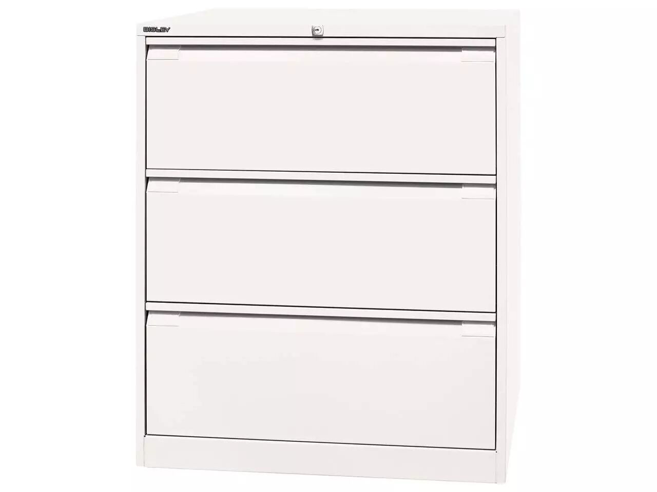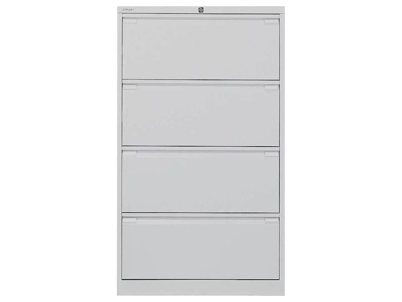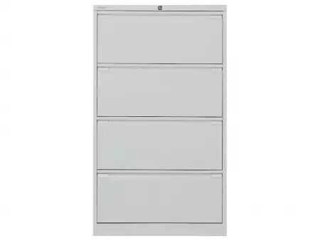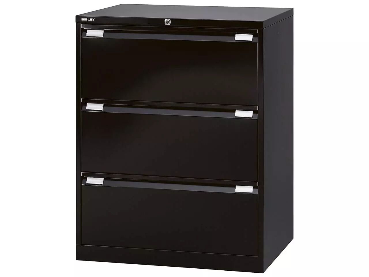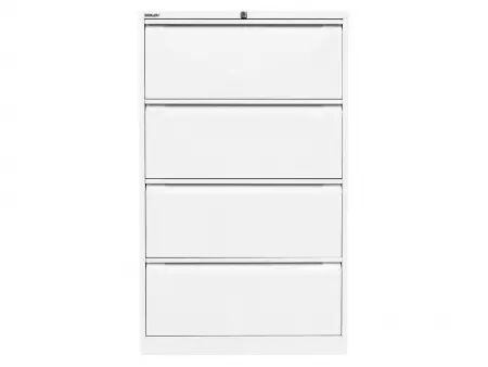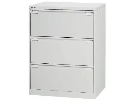 Sécurité garantie : butée d'arrêt (on ne peut ouvrir qu'un tiroir à la fois), blocage anti-retour, bacs de tiroirs entièrement fermés et fermeture centralisée. Avec glissières télescopiques à double roulement (pour un fonctionnement fluide et silencieux) et poignées continues sur toute la largeur. Certifié conforme à la norme DIN 4554 par le TÜV/GS.