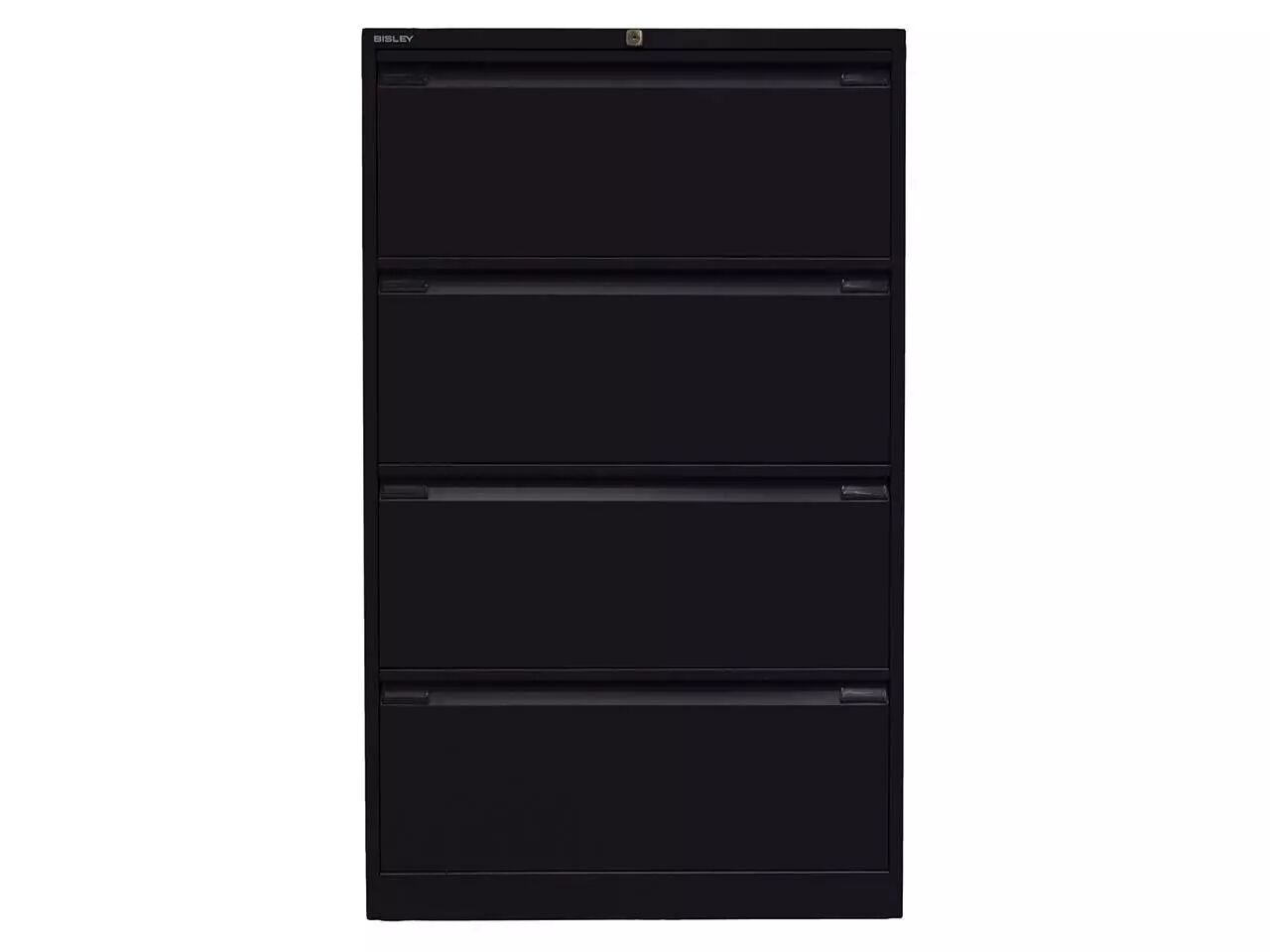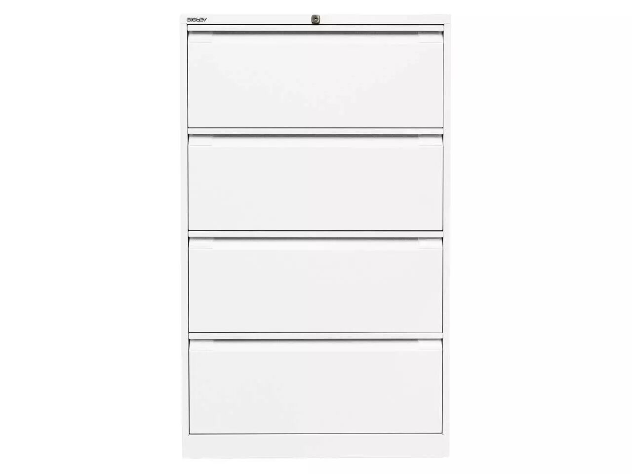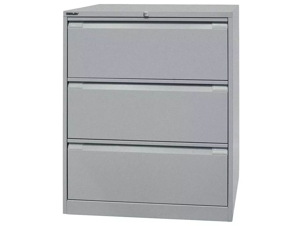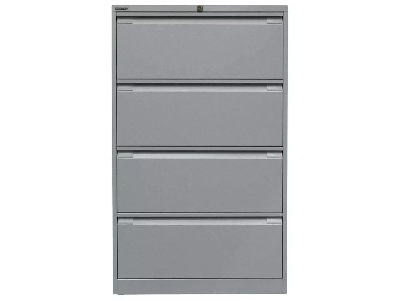 Sécurité garantie : butée d'arrêt (on ne peut ouvrir qu'un tiroir à la fois), blocage anti-retour, bacs de tiroirs entièrement fermés et fermeture centralisée. Avec glissières télescopiques à double roulement (pour un fonctionnement fluide et silencieux) et poignées continues sur toute la largeur. Certifié conforme à la norme DIN 4554 par le TÜV/GS.