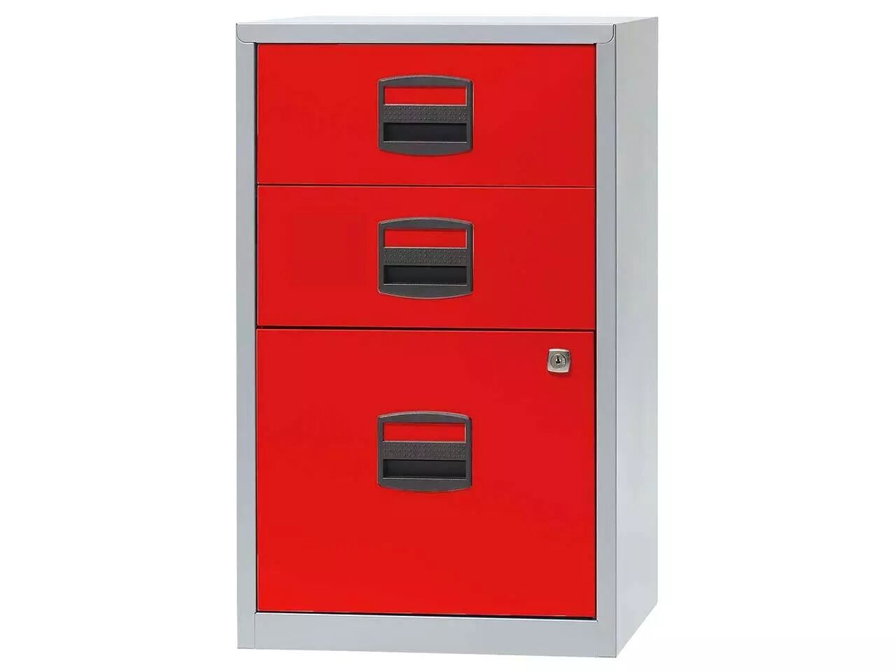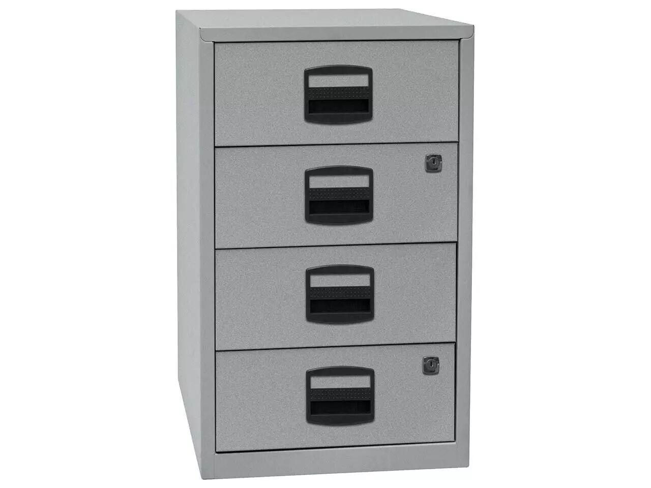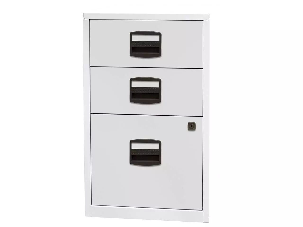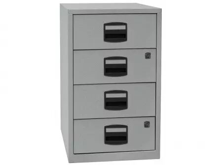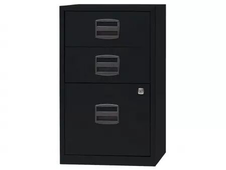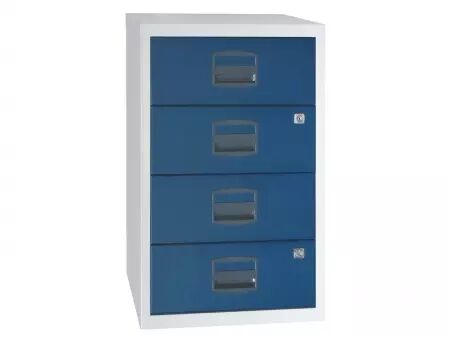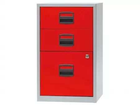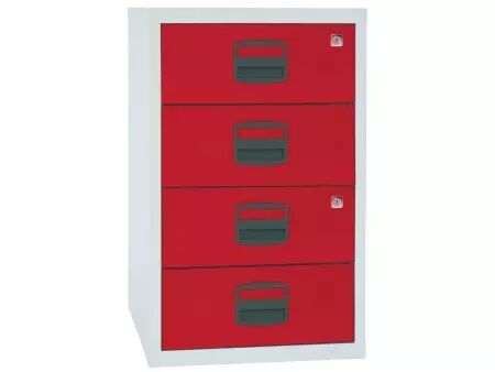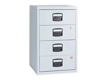 Compact et pas cher : poignées avec porte-étiquette et tiroirs à roulement à billes pour une utilisation confortable. Un ou deux tiroirs à serrure. Corps en acier thermolaqué, poignées en plastique sans chlore. Pour tous les classeurs de la gamme : profondeur = 40 cm. Fabriqué en Europe. Livré au rez-de-chaussée.