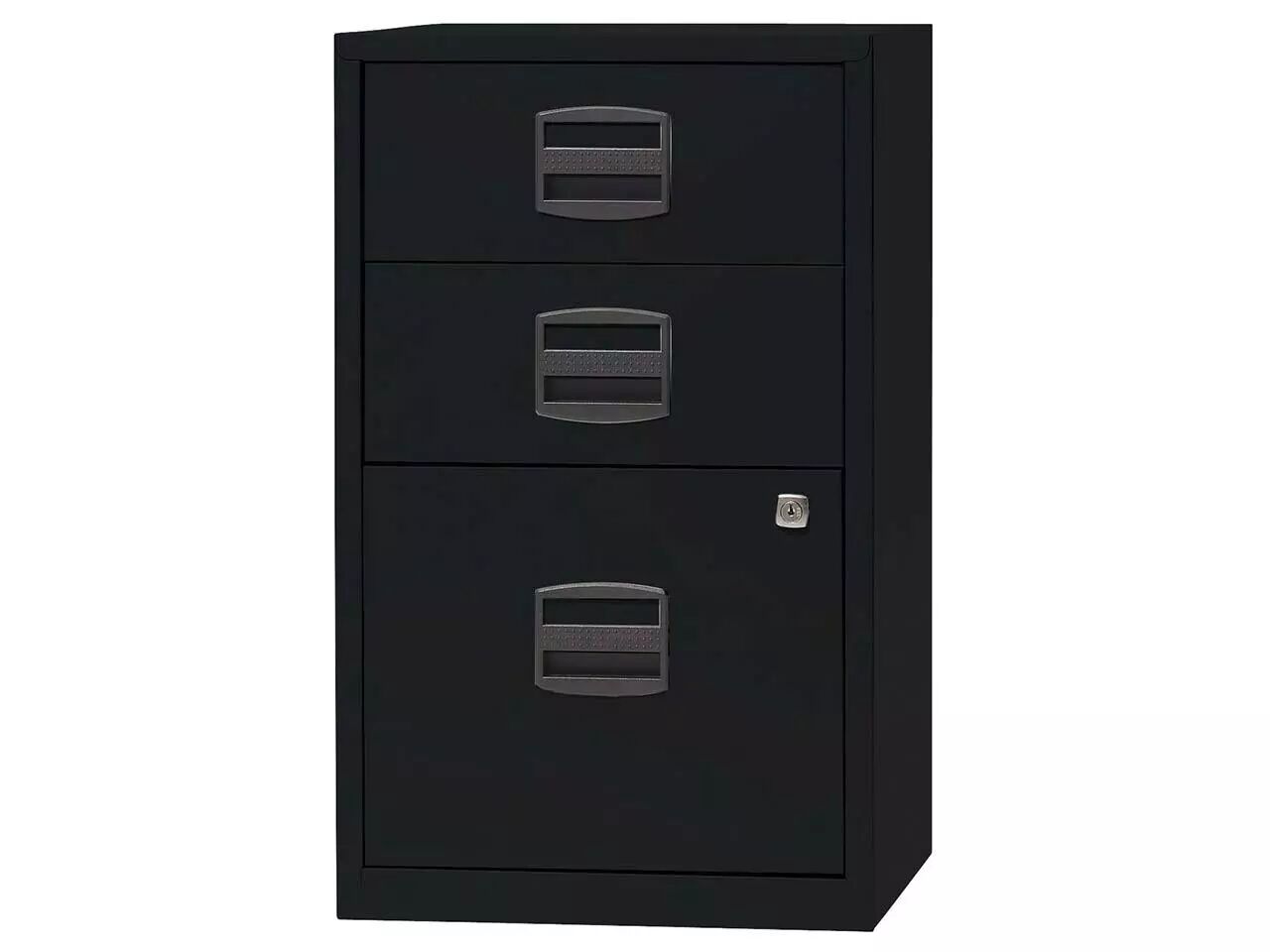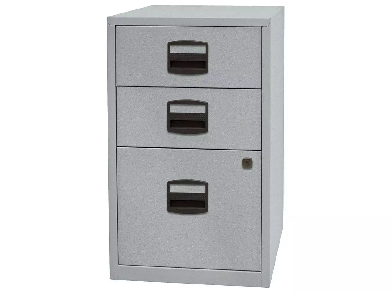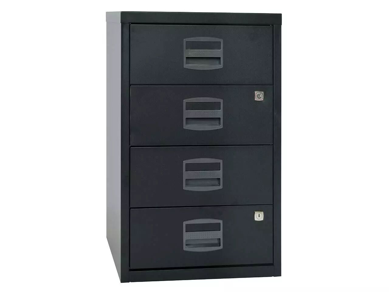 Compact et pas cher : poignées avec porte-étiquette et tiroirs à roulement à billes pour une utilisation confortable. Un ou deux tiroirs à serrure. Corps en acier thermolaqué, poignées en plastique sans chlore. Pour tous les classeurs de la gamme : profondeur = 40 cm. Fabriqué en Europe. Livré au rez-de-chaussée.