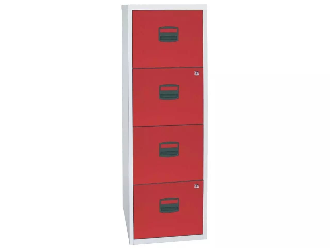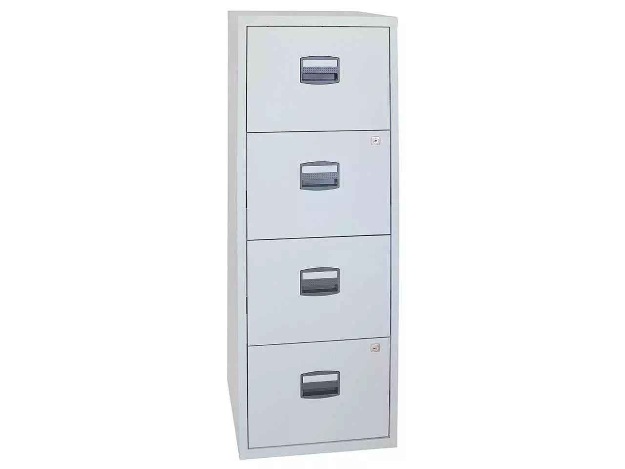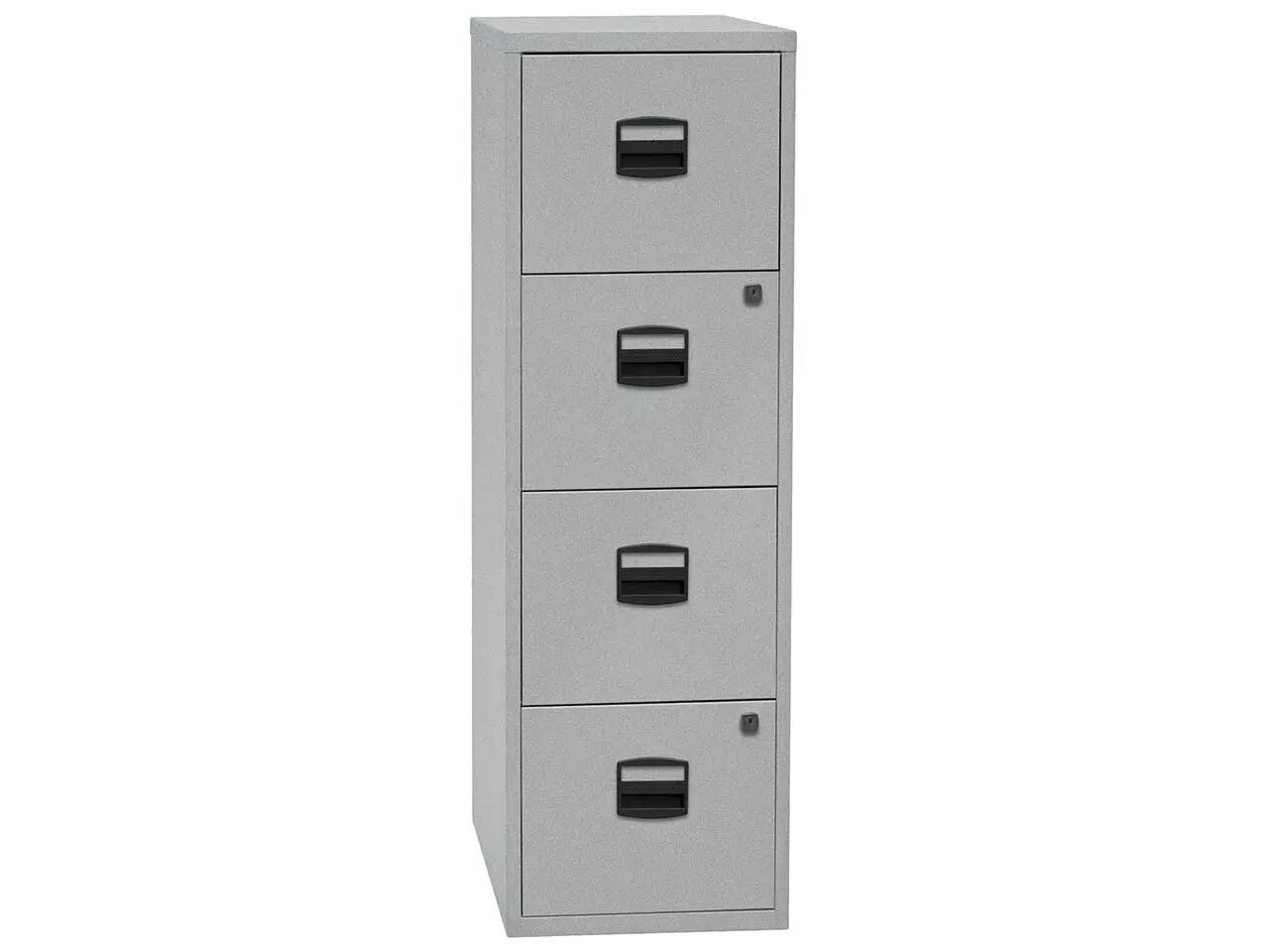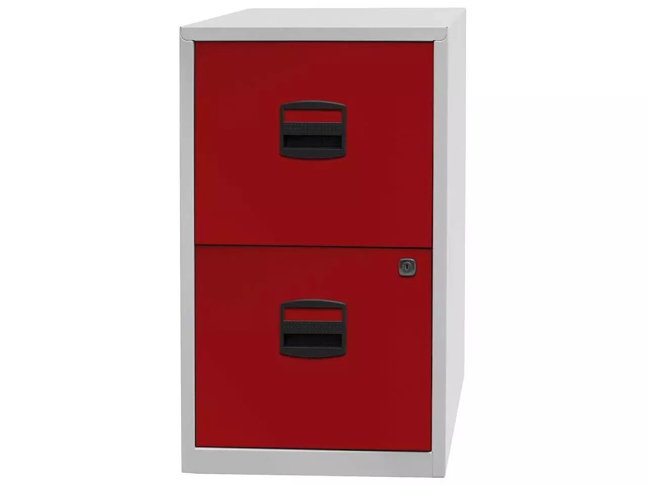 Compact et pas cher : poignées avec porte-étiquette et tiroirs à roulement à billes pour une utilisation confortable. Un ou deux tiroirs à serrure. Corps en acier thermolaqué, poignées en plastique sans chlore. Pour tous les classeurs de la gamme : profondeur = 40 cm. Fabriqué en Europe. Livré au rez-de-chaussée.