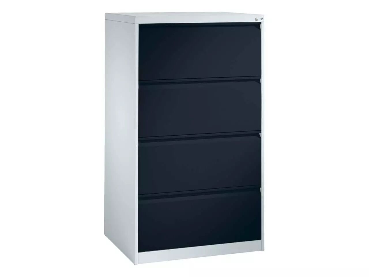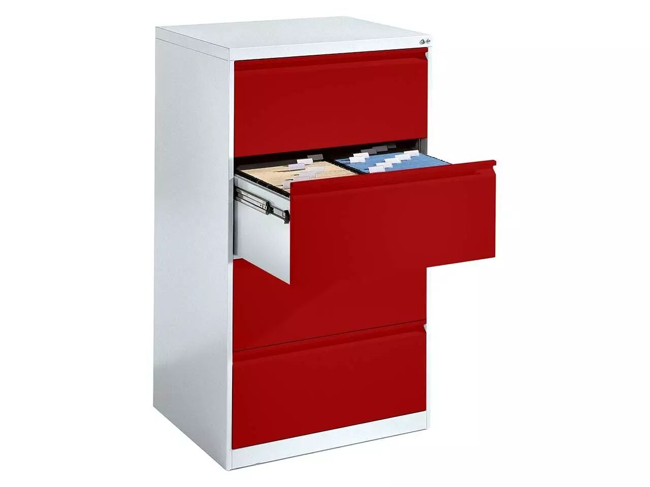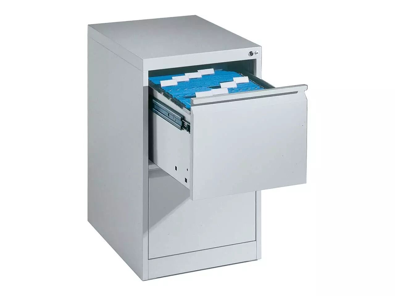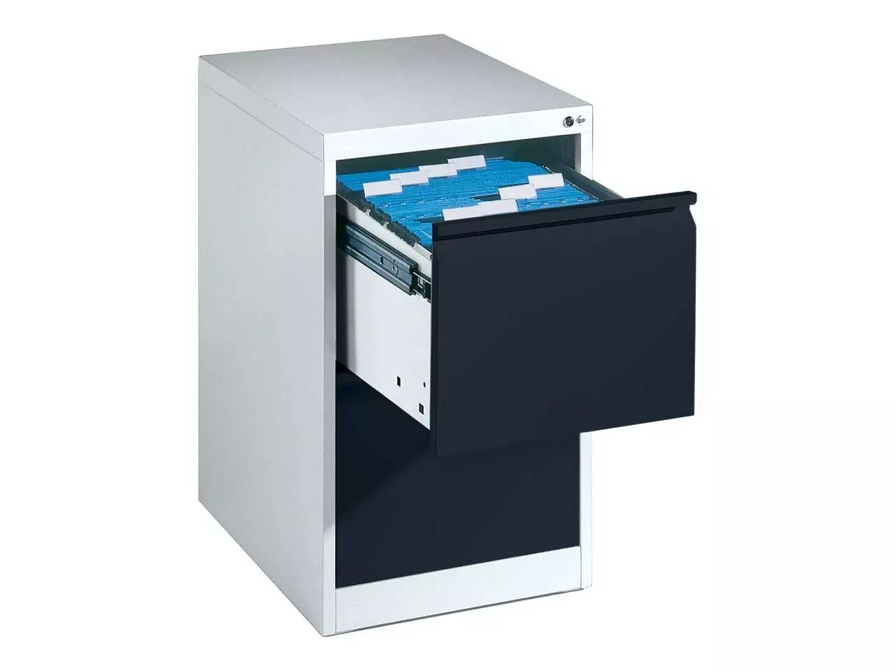 La qualité à prix économique : struture métalique solidement soudée avec tiroirs sur rails télescopiques à roulement à billes. Extensions avec hauteur de tiroir fermée, fermeture centralisée et double butée d'arrêt, peut contenir jusqu'à 50 kg. Les tiroirs de ces classeurs sont tous avec fond.