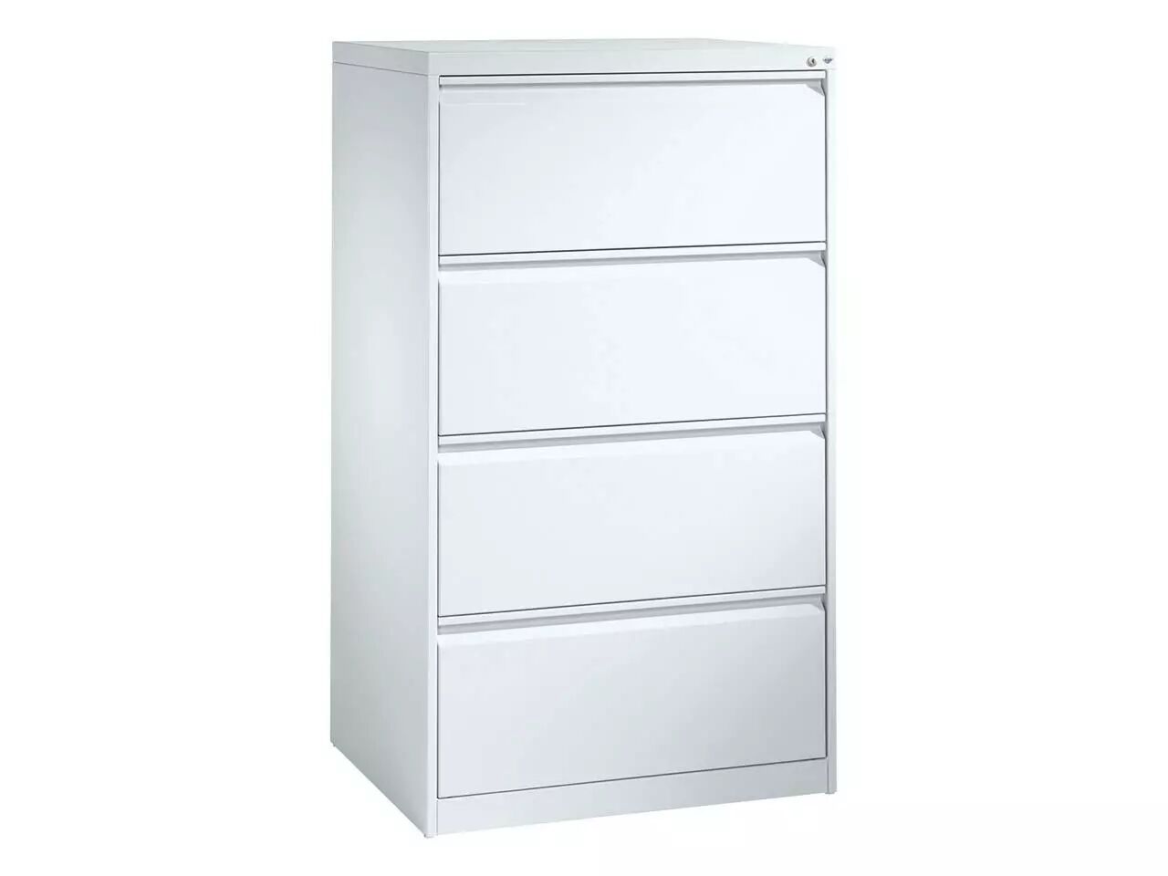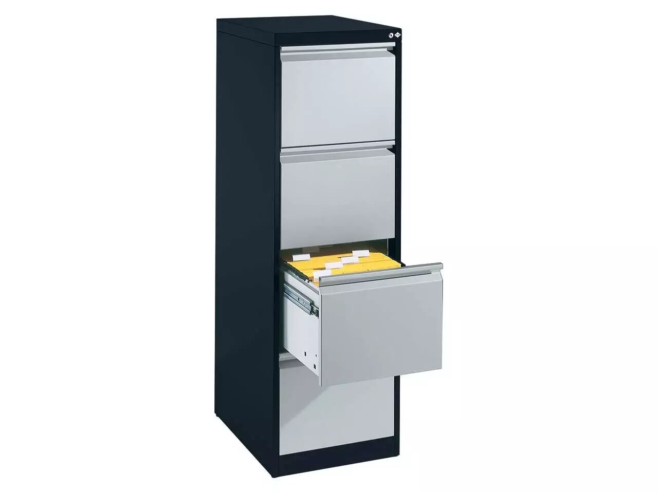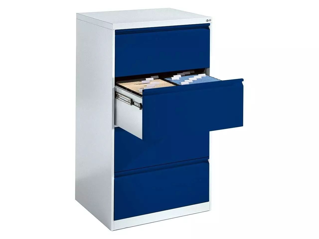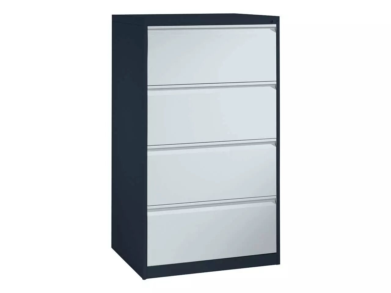 La qualité à prix économique : struture métalique solidement soudée avec tiroirs sur rails télescopiques à roulement à billes. Extensions avec hauteur de tiroir fermée, fermeture centralisée et double butée d'arrêt, peut contenir jusqu'à 50 kg. Les tiroirs de ces classeurs sont tous avec fond.