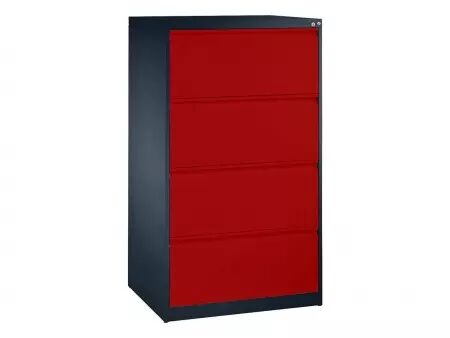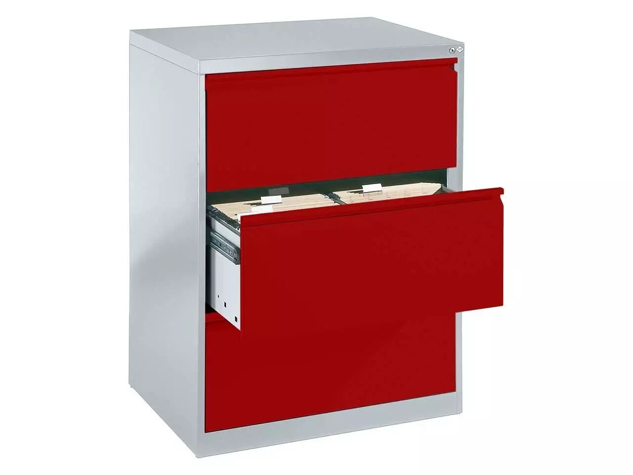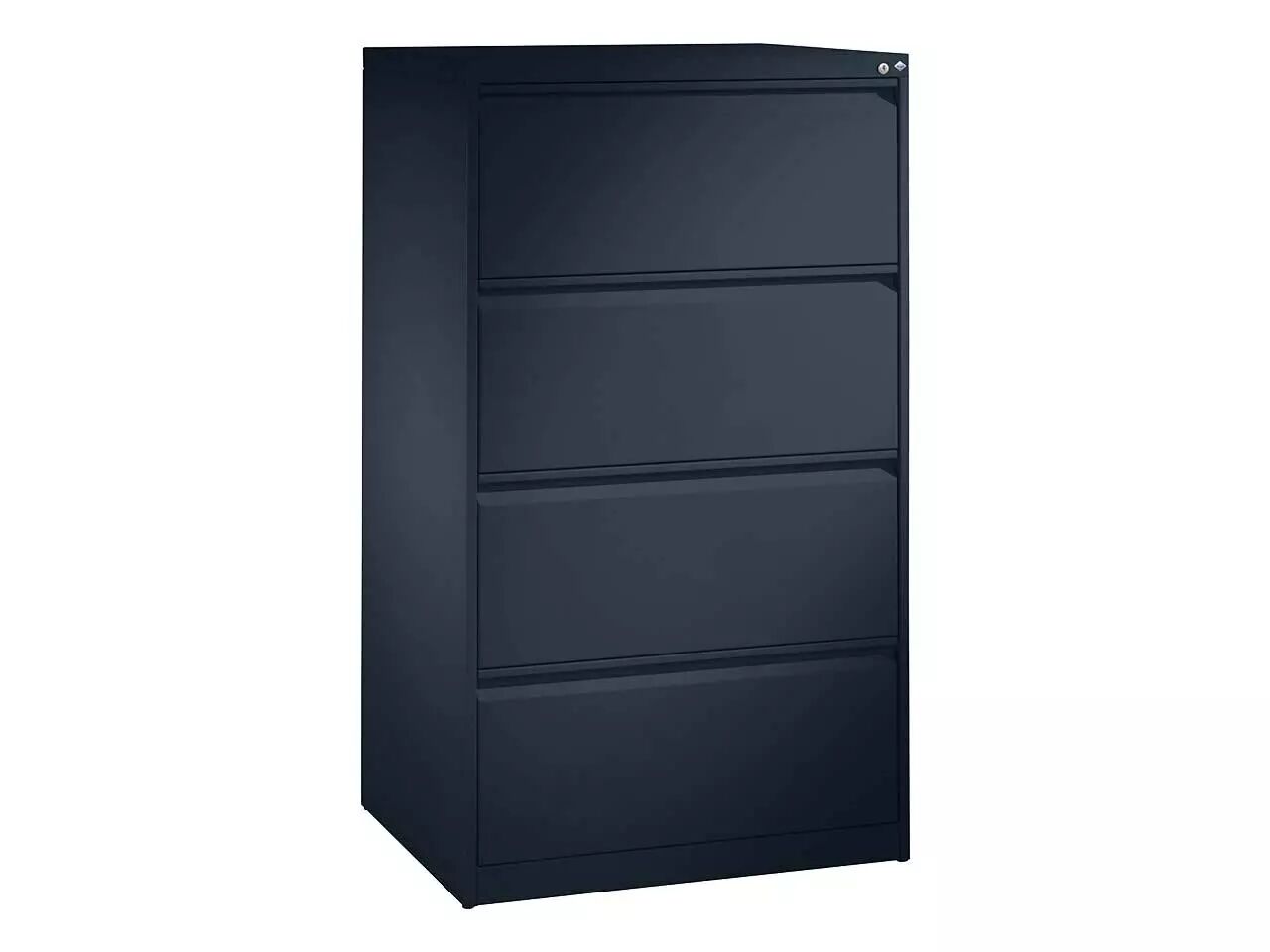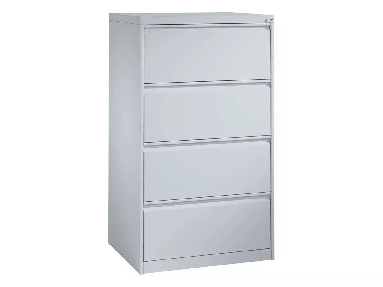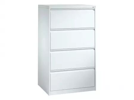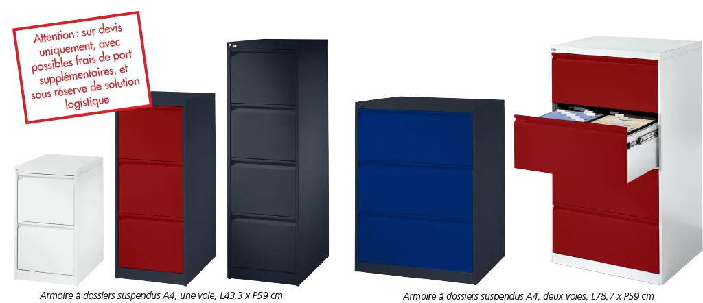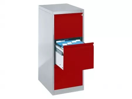 La qualité à prix économique : struture métalique solidement soudée avec tiroirs sur rails télescopiques à roulement à billes. Extensions avec hauteur de tiroir fermée, fermeture centralisée et double butée d'arrêt, peut contenir jusqu'à 50 kg. Les tiroirs de ces classeurs sont tous avec fond.