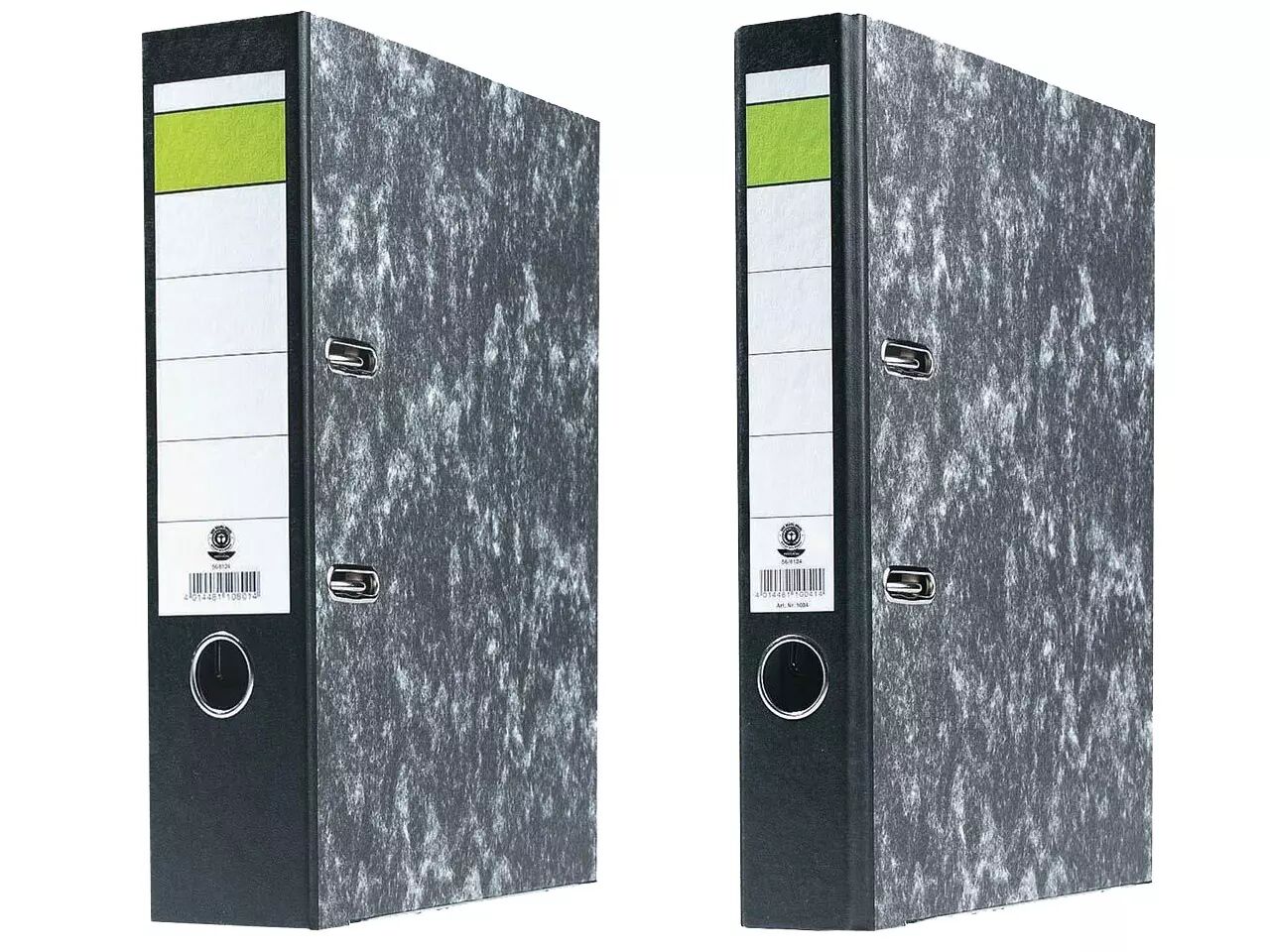 Classeur recyclé à levier, avec bague de serrage pour le classement des feuilles.