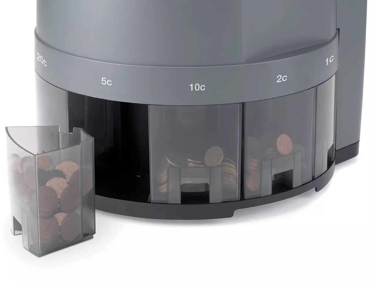 Confort de lecture grâce à son large afficheur LCD à 7 chiffres. Son fonctionnement simple et ses fonctions d'addition et de création de lots d'un nombre défini de pièces vous permettront de connaître rapidement le contenu précis de votre caisse, et faciliteront vos remises en banque. Confort d'utilisation grâce à un arrêt automatique si un baquet est plein et un fonctionnement silencieux (baquet spécial avec un insert insonorisé). Enfin, le méchanisme de transport des pièces en métal massif vous garantie une longue durée de vie (3 ans de garantie). Elle est également conçue pour un entretien aisé.