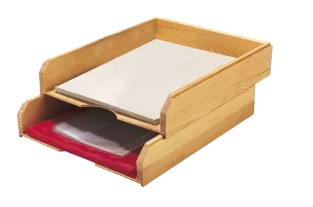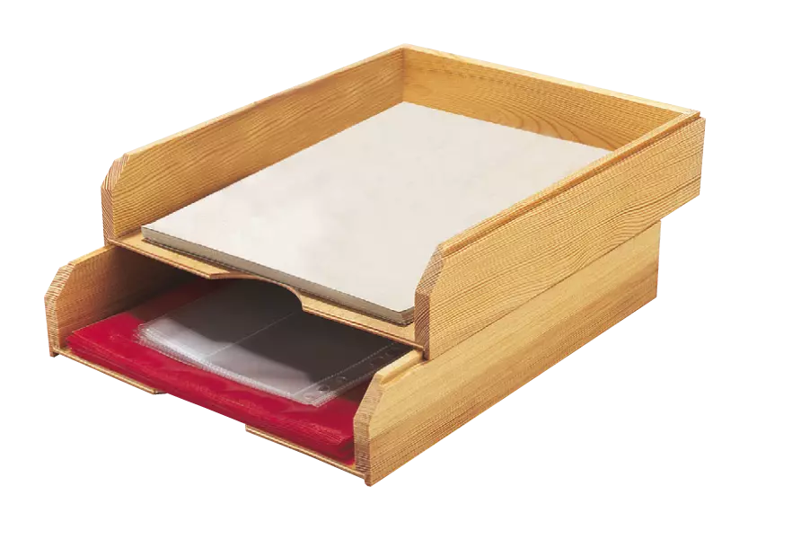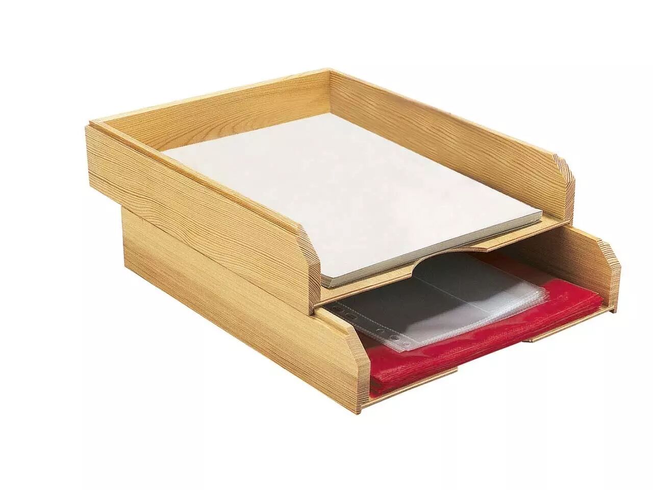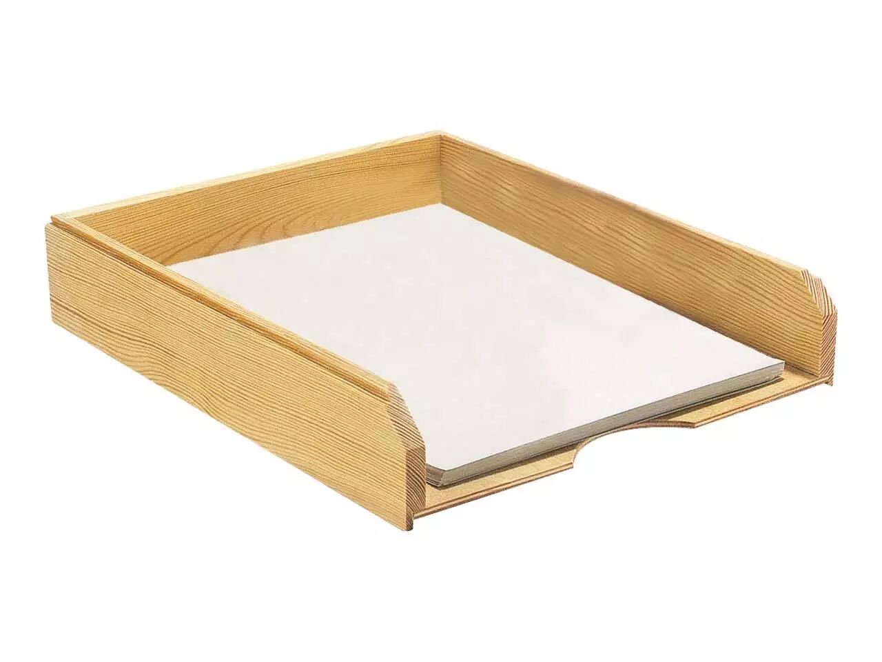 Corbeille à courrier en sapin naturel, pour trier vos documents, papiers et courriers. Corbeille simple, superposable, hauteur 6 cm (la photo montre deux corbeilles superposées), format A4 (largeur max des documents placés dans la corbeille : 240 mm). Le bois est protégé par l'application d'une huile végétale (huile de tung).