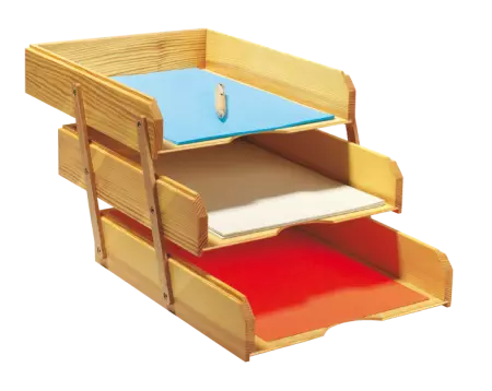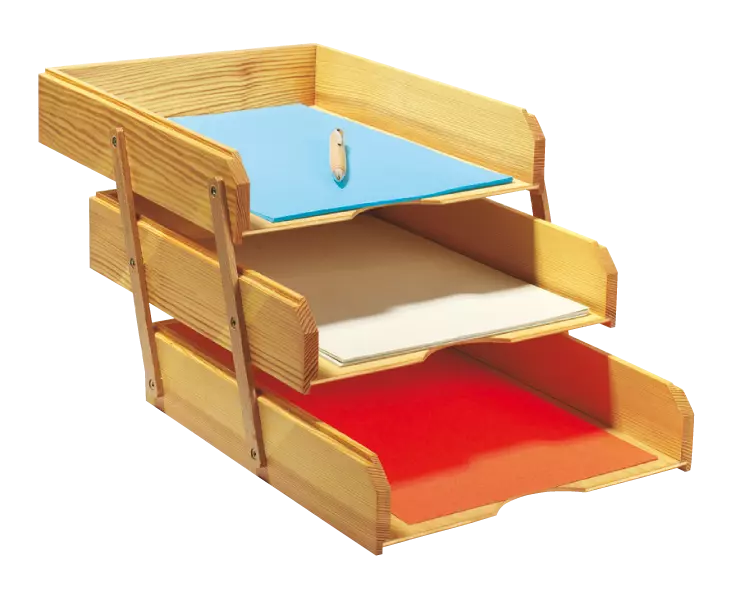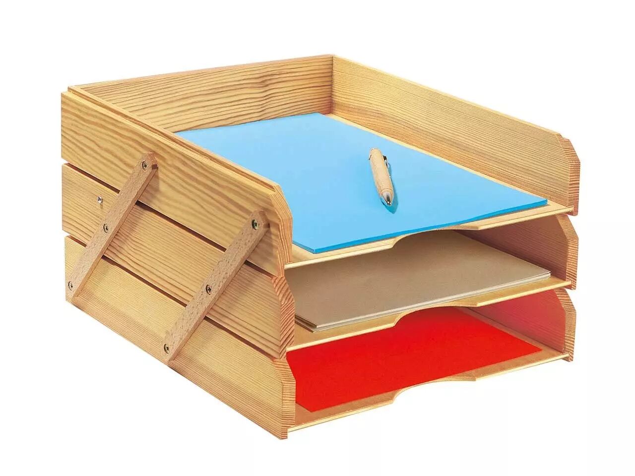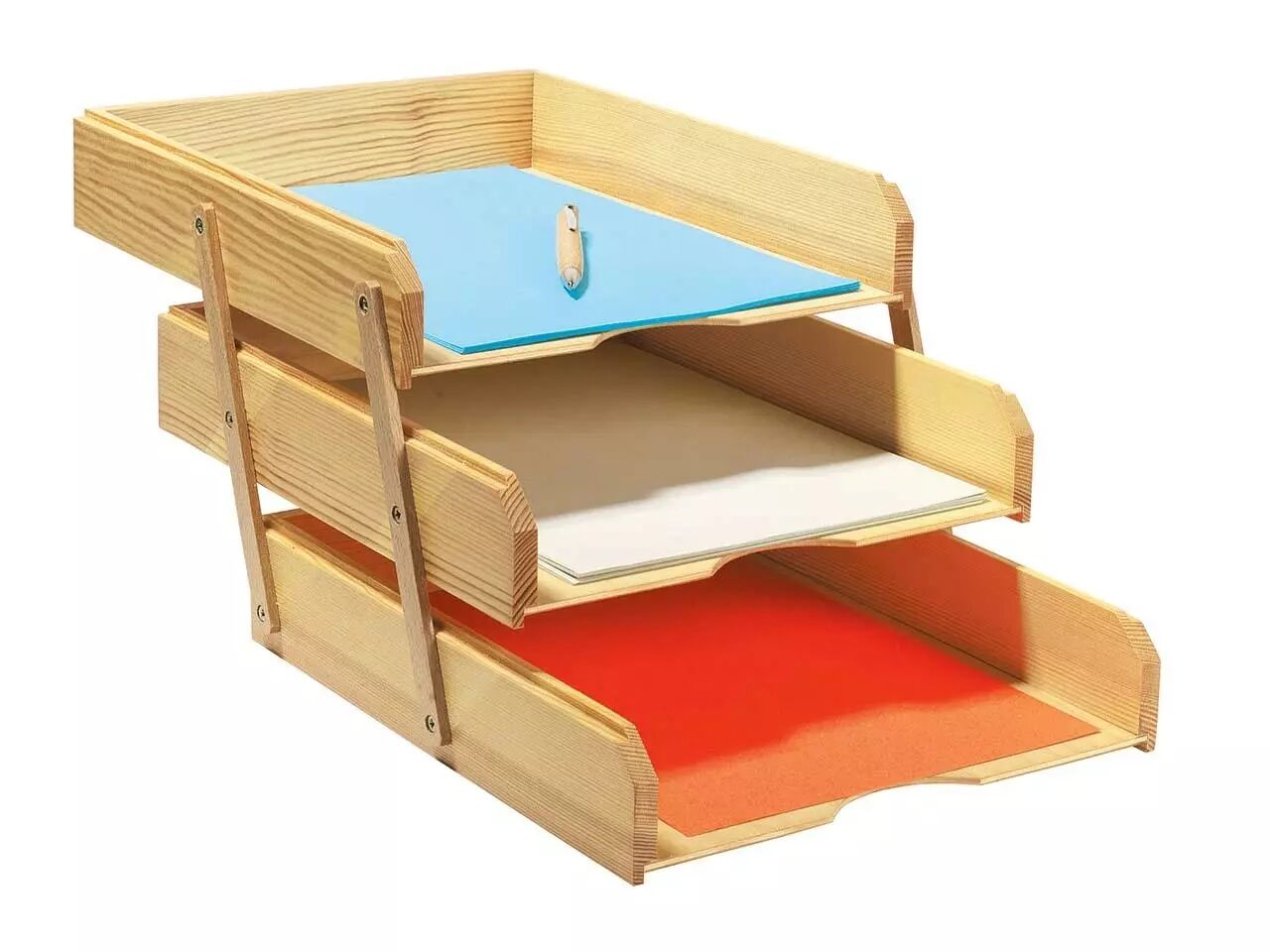Corbeilles à courrier bois. A4. Corbeille à 3 étages articulés, hauteur : env. 18 cm. En bois de sapin naturel huilé (huile naturelle d'origine végétale : huile de tung).