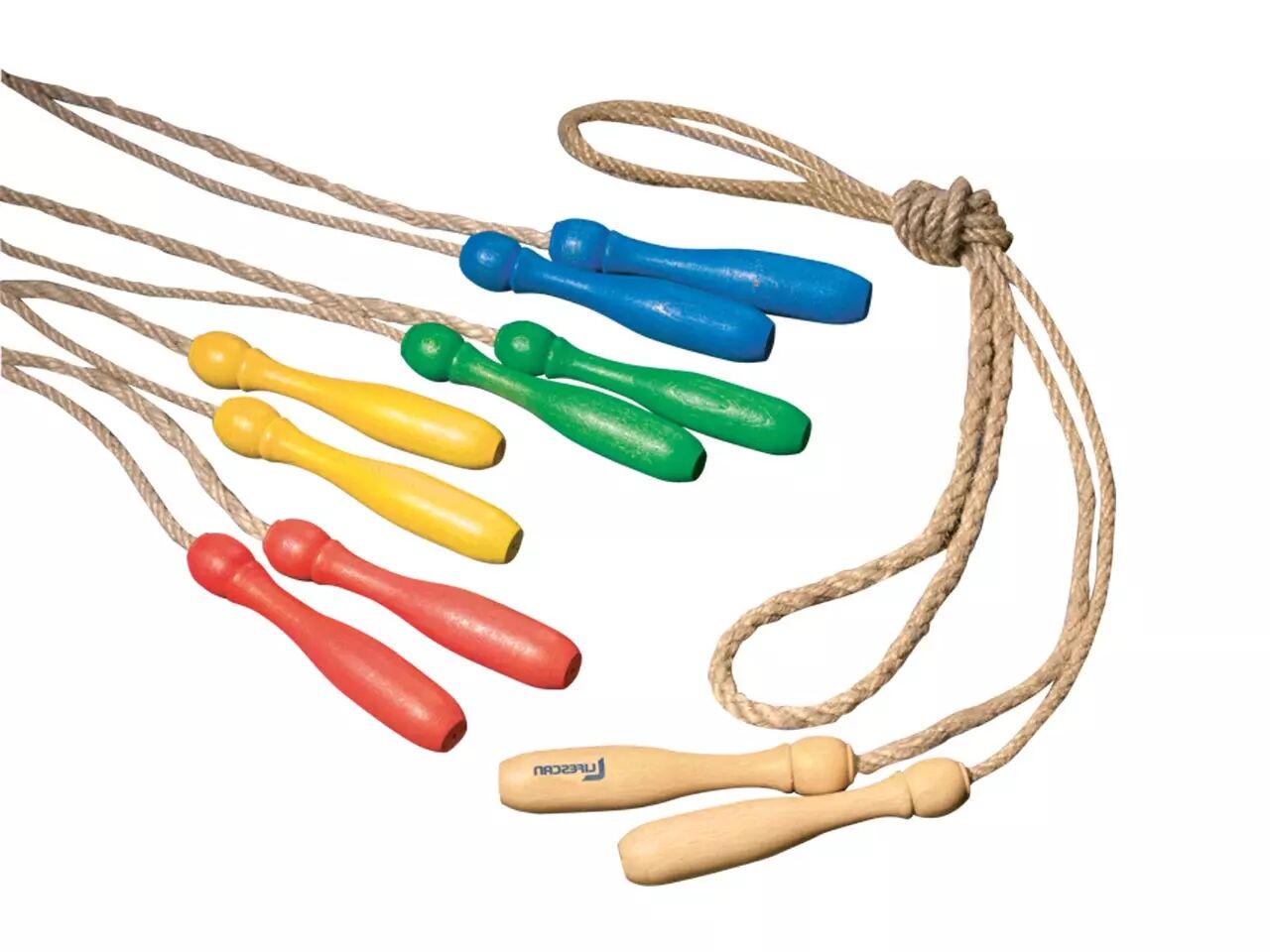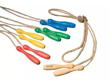 Corde à sauter en corde de jute avec poignées en hêtre ciré, long. 2,5 m. Cette corde à sauter est fabriquée en Allemagne à partir de hêtre massif issu de forêts gérées durablement, il est certifié FSC®.