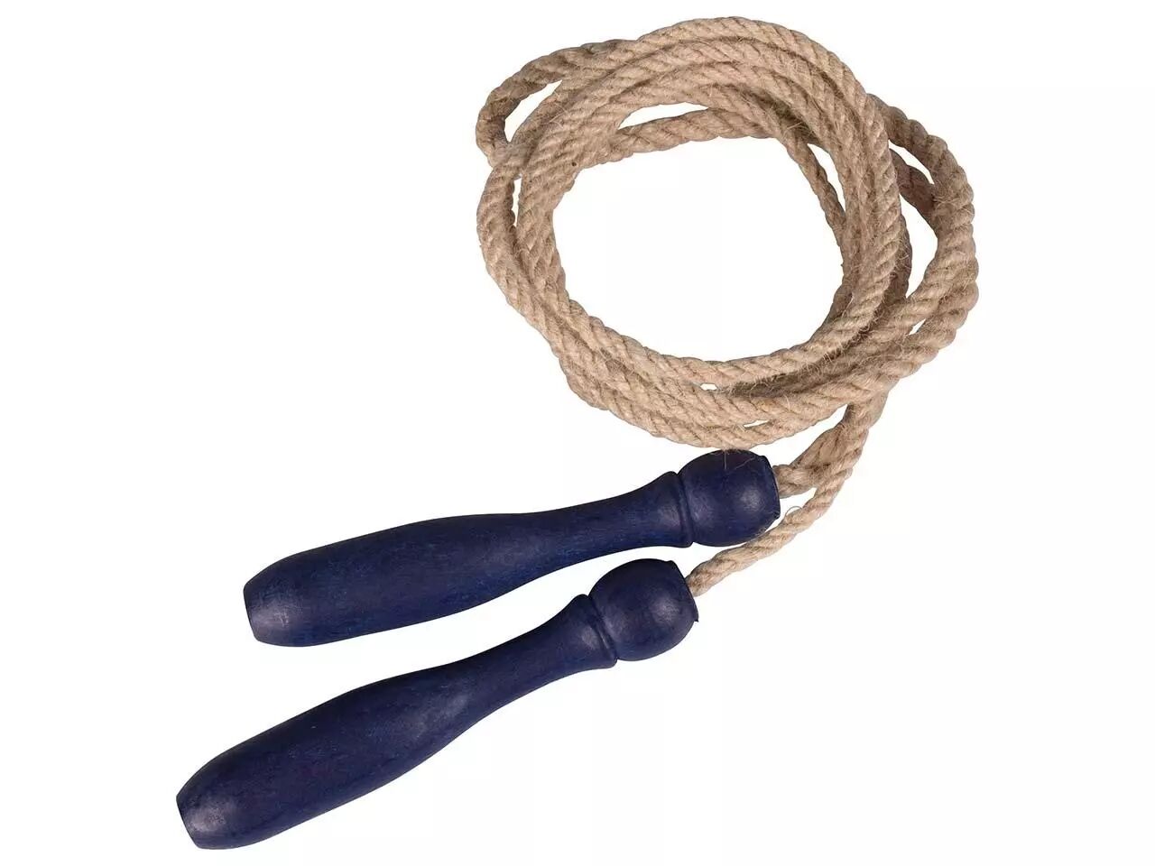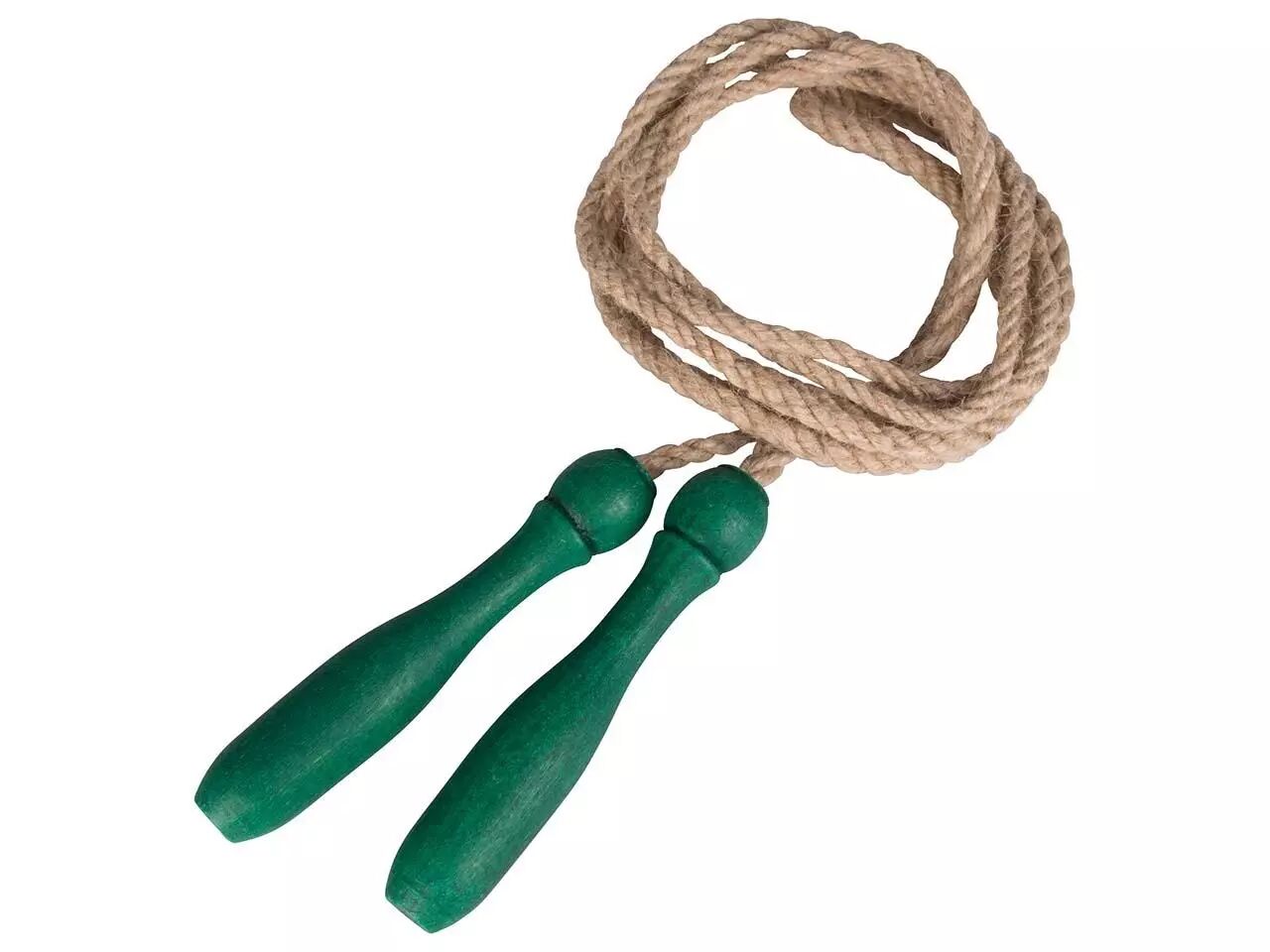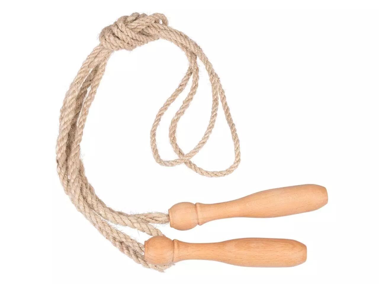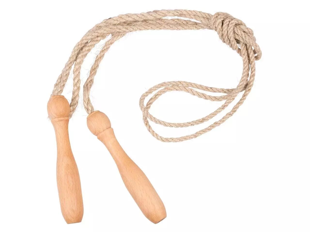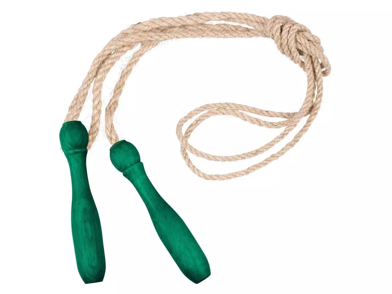 Corde à sauter en jute avec poignées en hêtre ciré, long. 2,5 m. Fabriquée en Allemagne à partir de bois issu de forêts gérées durablement (label FSC®).