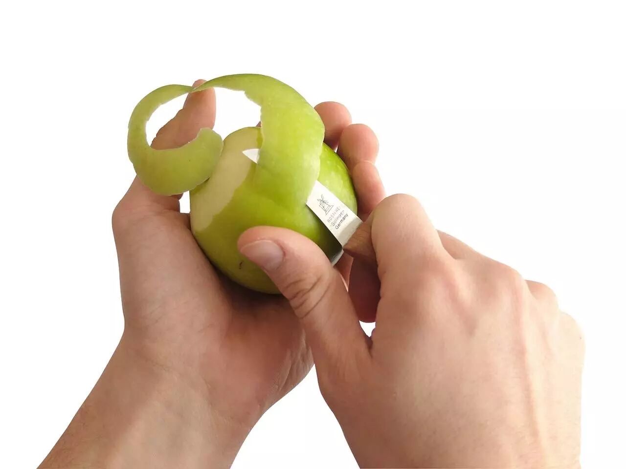 Avec une lame courbée, il pèle finement et de manière régulière. La longueur du manche est également idéale pour les grandes mains. Longueur de lame 5,9 cm. Longueur totale?: 16 cm, largeur 1,5 cm, hauteur 1,1 cm.