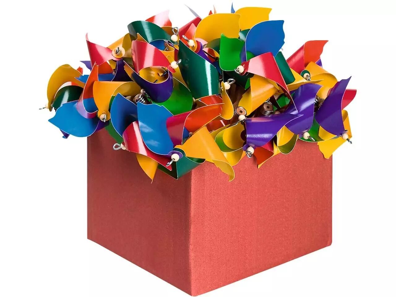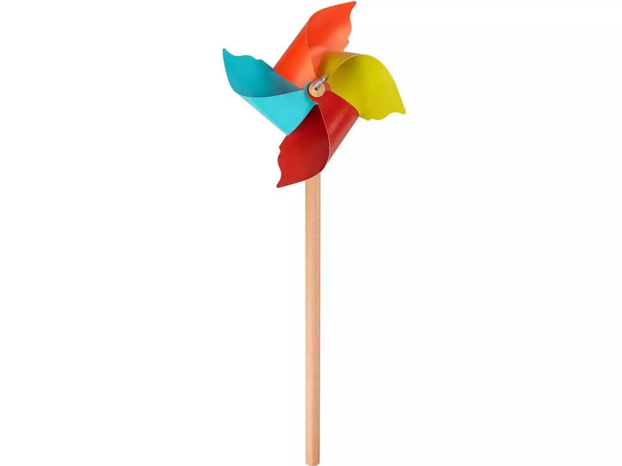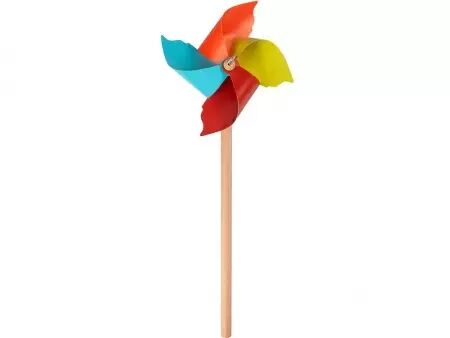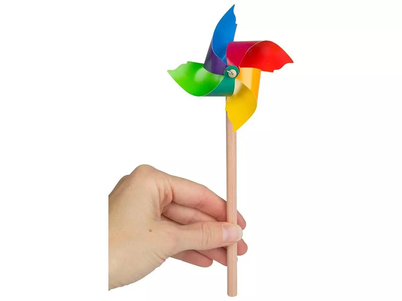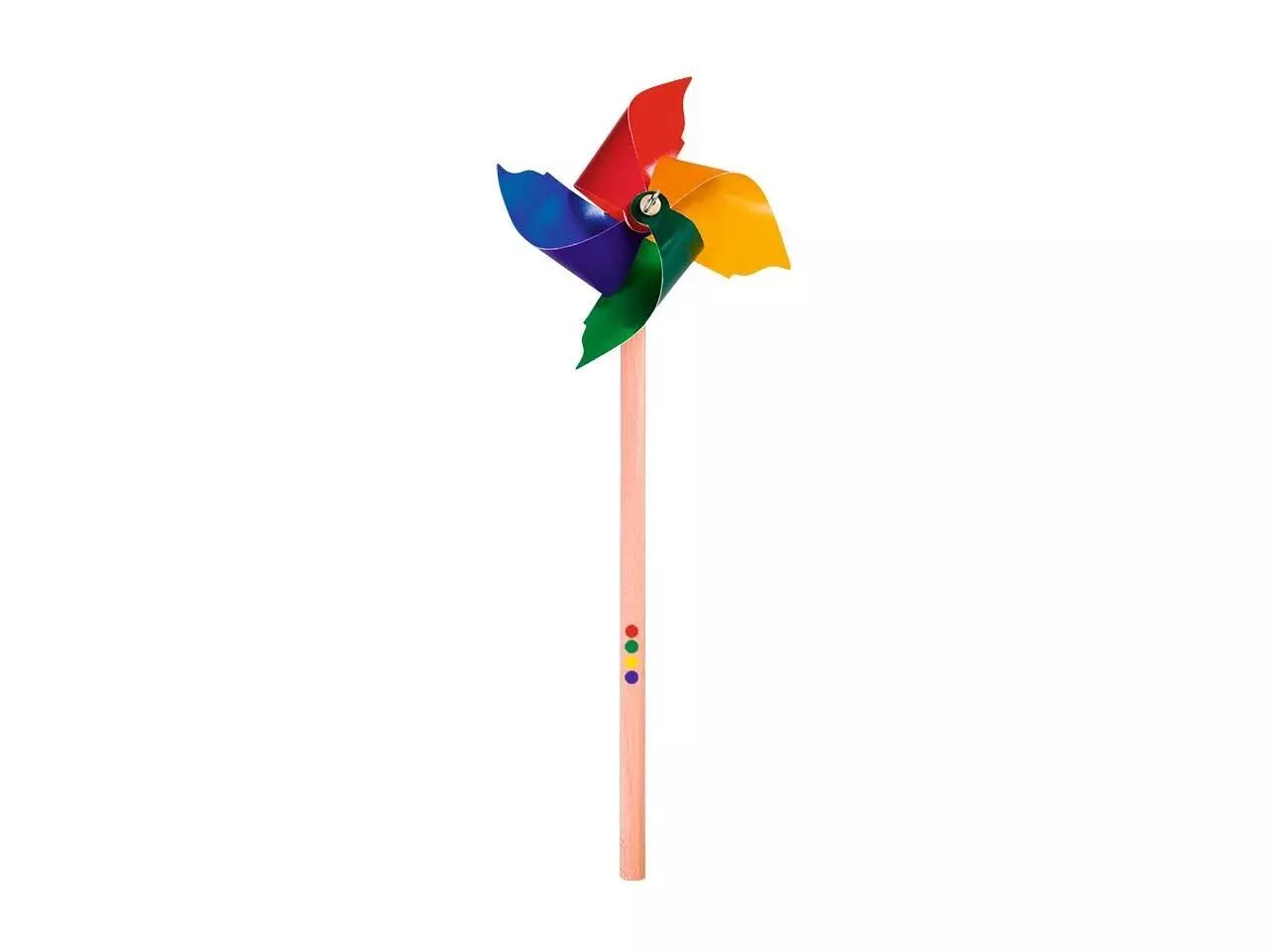 Crayon éolienne bois, corps en bois de tilleul européen longueur 20 cm, avec roue en papier coloré ?7 cm. Vendu par multiple de 25 pièces uniquement. Les crayons sont livrés non taillés.