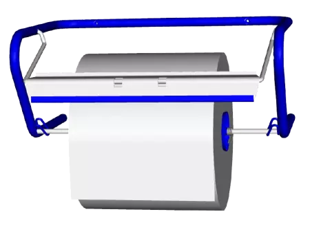 Dérouleur mural pour bobines d'essuyage, en métal de couleur bleu. Convient aux bobines d'essuyage jusqu´à 410 mm de diamètre et 400 mm de large. Est conçu pour une fixation murale (nécessaire de fixation inclus). Un bras articulé porte-lame facilite la découpe des feuilles de papier.