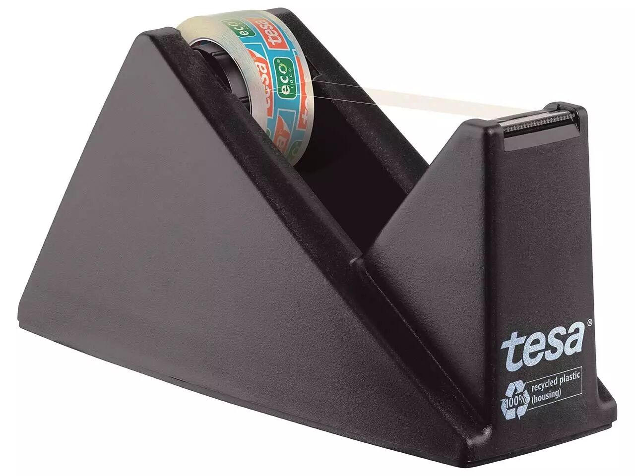 Corps en plastique 100% recyclé, qualité 100% Tesa ! Lame dentelée pour une coupe propre et nette. Pour toutes les largeurs de rouleau jusqu'à 19 mm. En pack éco avec un rouleau de ruban adhésif transparent Tesa «Eco & Clear», fabrication sans solvant (10 m x 15 mm, film support en PP 100% recyclé, mandrin en plastique 100% recyclé). Emballage constitué à 80% de carton recyclé. Dimensions l 9,5 x p 15,5 x h 6 cm, poids 676 g.
