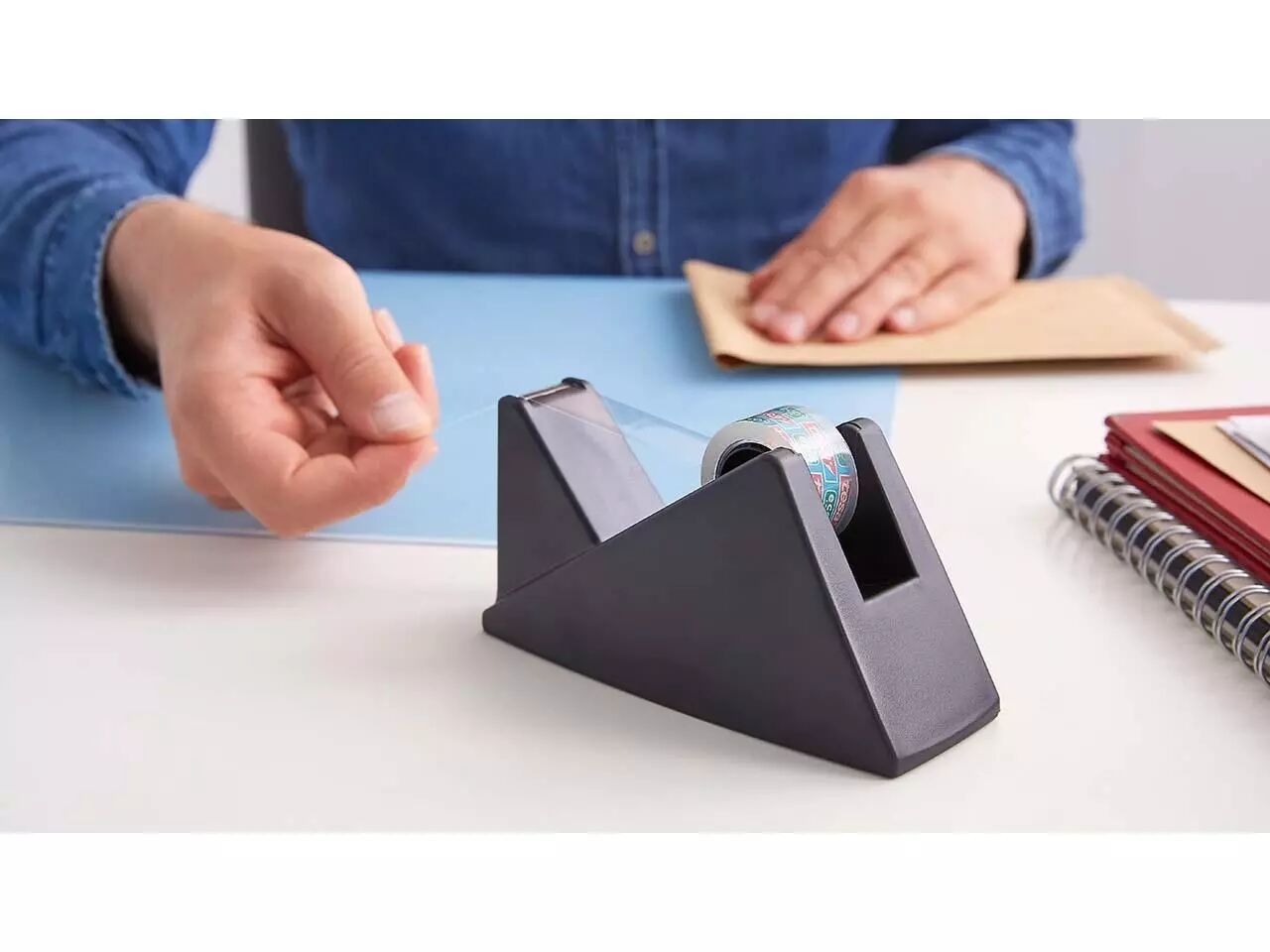 Le dévidoir ruban adhésif en plastique recyclé.