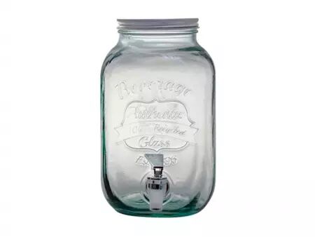 Boissons en libre-service : ce magnifique distributeur de boissons en verre recyclé à l'allure rétro donne du peps à toutes les fêtes, à l'intérieur comme à l'extérieur. Il sera parfait pour une limonade ou un jus de fruit à l'occasion d'un anniversaire d'enfant, ou pour un punch durant un barbecue. Ce distributeur à robinet bénéficie d'un couvercle vissé, et sa grande capacité de 4 l permettra d'étancher toutes les soifs ! Surprenez vos invités avec ce produit astucieux à l'occasion de toutes vos fêtes, ou offrez-le comme cadeau. Ø 18 cm, h 25 cm.