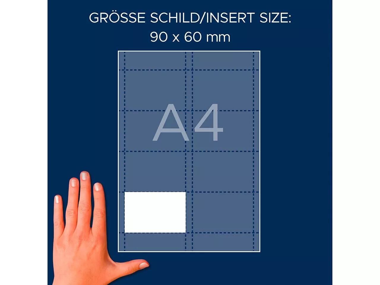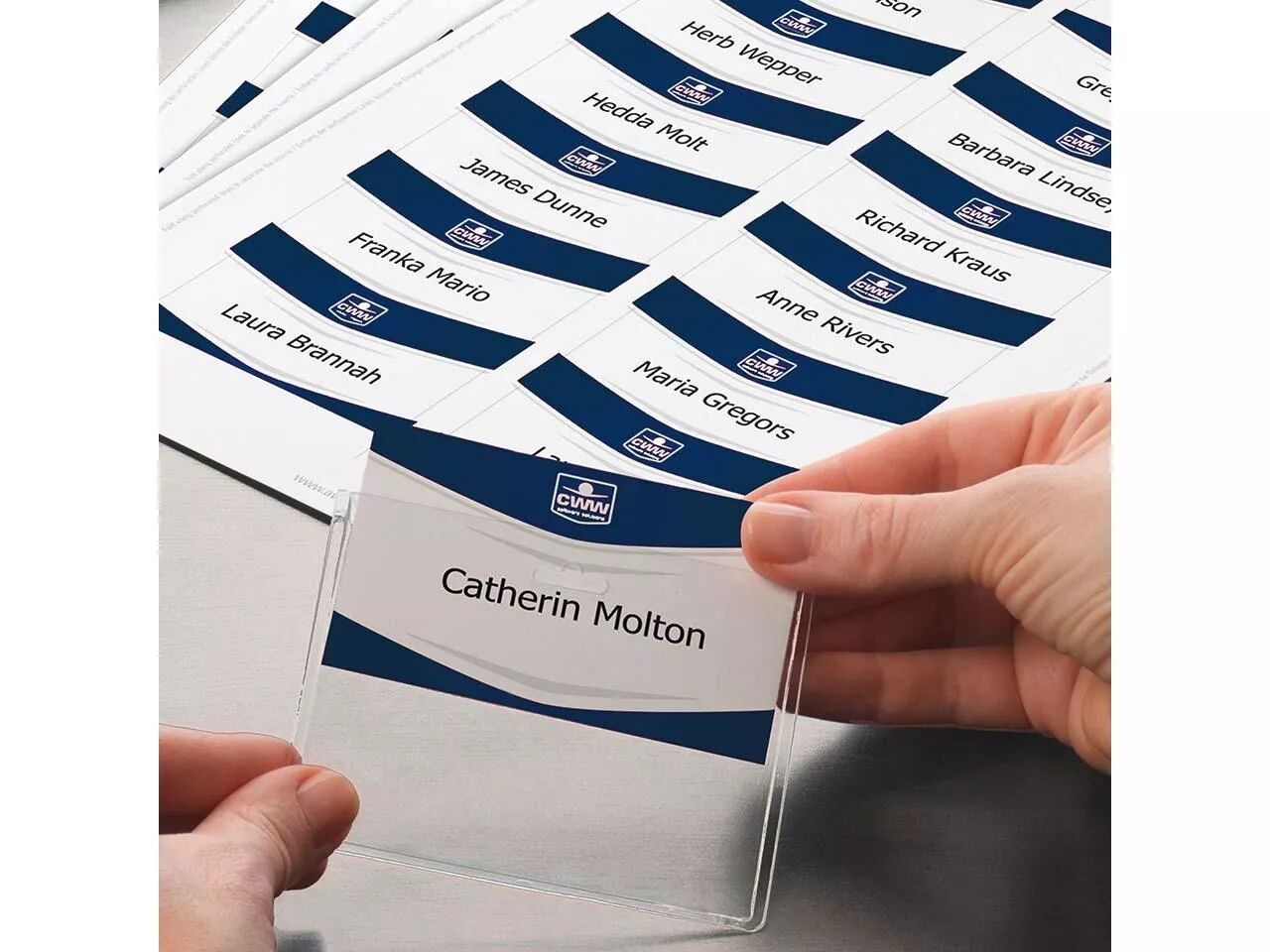 Planches d'étiquettes Avery porte-badges avec microperforation. Les étiquettes à insérer sont conçues pour les porte-cartes et pochettes réutilisables. Les étiquettes blanches sont personnalisées puisque c'est vous qui les imprimerez, elles sont compatibles avec toutes les imprimantes standard. Grâce à leur microperforation extra-fine, les étiquettes individuelles sont faciles à détacher. Le papier de 190 g/m² facilite l'insertion des étiquettes. Deux formats disponibles.