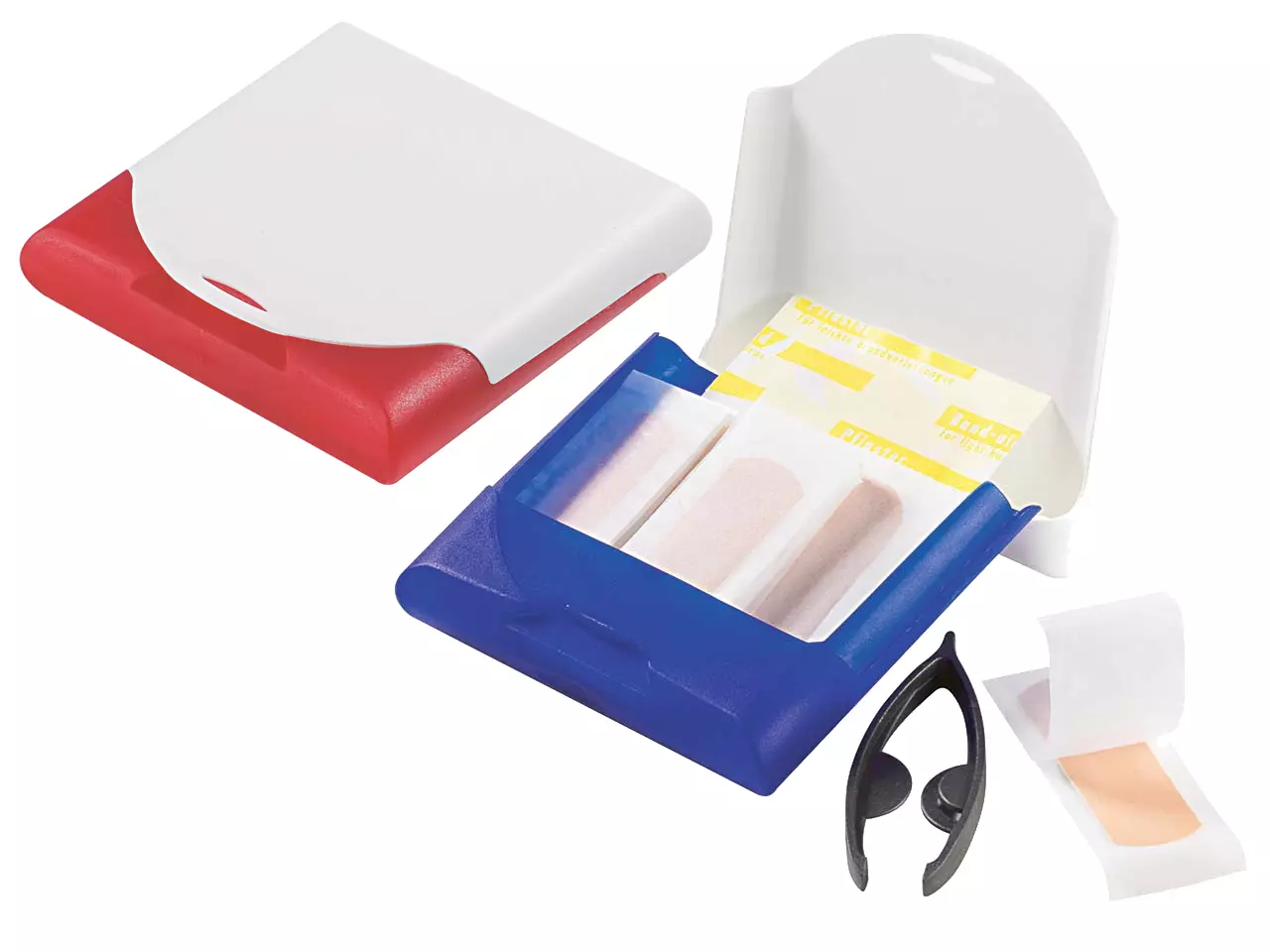 Les étuis légers et solides en polypropylène sont faciles à emporter et se glissent dans n'importe quel sac ou poche de manteau. En cas d'urgence, ils peuvent s'ouvrir avec une seule main. Ils contiennent différents pansements fabriqués en Allemagne (conformément aux directives européennes). Contrairement à de nombreux produits du commerce, les pansements sont recouverts non pas de film, mais de papier.