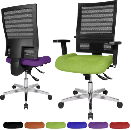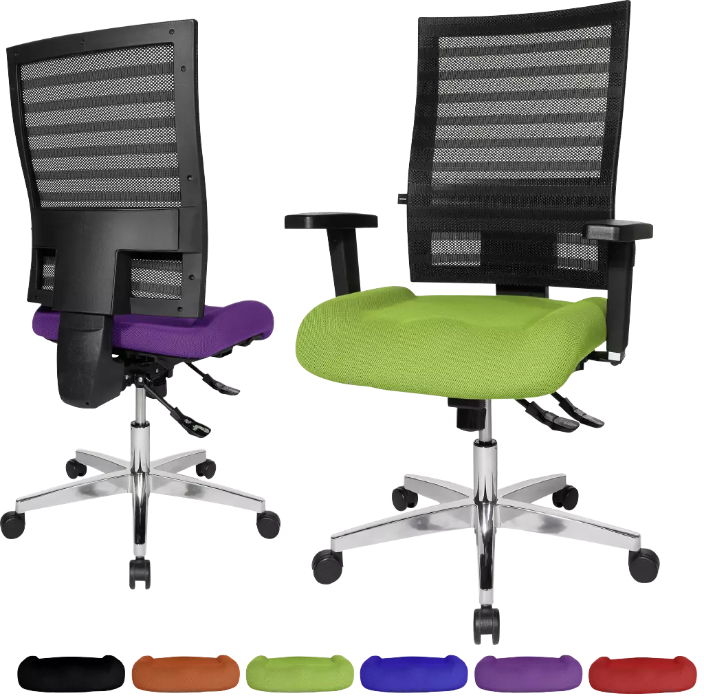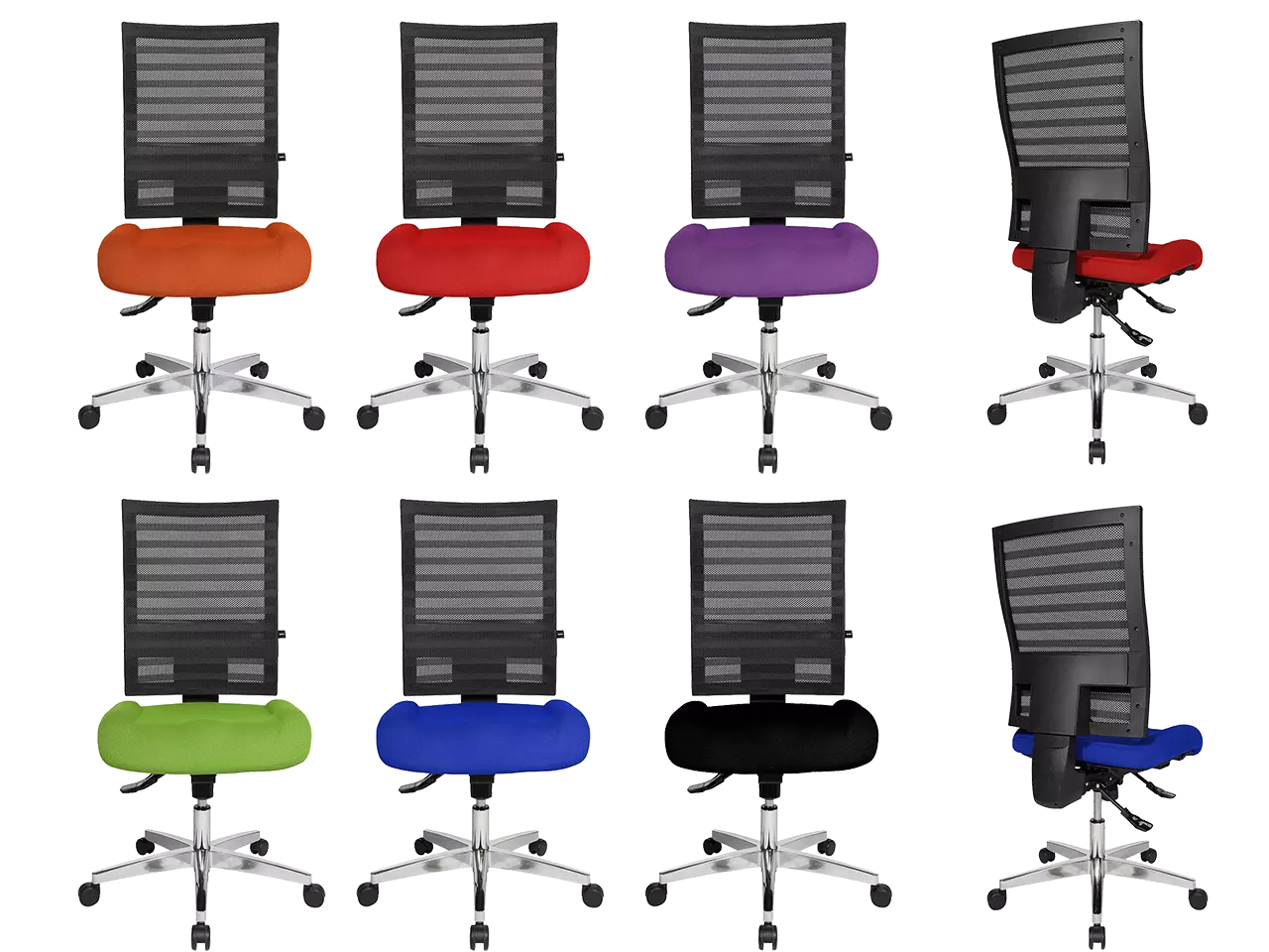 Siège pivotant de qualité supérieure avec une mousse à mémoire de forme spéciale qui permet de s'assoir sans se fatiguer, idéale pour un poste de travail. Hauteur et profondeur d'assise personnalisables. Dossier résille haut et orthopédique, assise creuse avec maintiens latéraux pour soutenir le bassin. Rigidité du mécanisme synchrone personnalisable en fonction du poids de la personne.