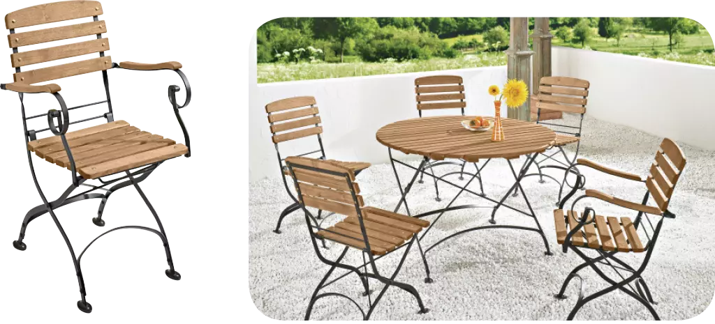 Des meubles ravissants au charme plein de nostalgie : ce salon de jardin pliant de qualité séduit par son excellent rapport qualité-prix. Fabriqué en Europe avec du bois de robinier lasuré certifié FSC®. Toutes les pièces métalliques et les ferronneries sont entièrement galvanisées contre la rouille et thermolaquées en noir. Les éléments en bois sont remplaçables.