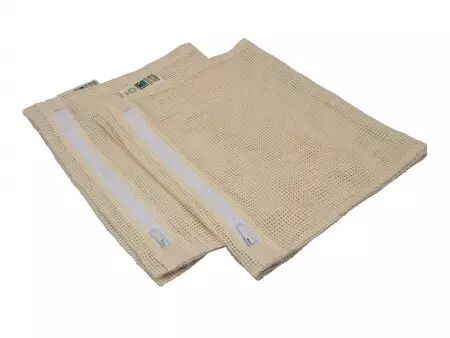Ces sacs en coton bio maillé et zipés sont parfaits pour protéger le linge pendant le lavage ! Les filets sont fabriqués à partir du meilleur coton biologique. Les labels GOTS, Coton Équitable et Bouton Vert garantissent une production respectueuse de l'environnement et des personnes qui les fabriquent. Grâce à la fermeture éclair de haute qualité, les filets à linge peuvent être fermés en toute sécurité. Ils conviennent aux textiles délicats, en réduisant l'abrasion et l'usure prématurée. Les sacs à linge sont emballés d'une simple bande papier, donc sans plastique. Format 30 x 50 cm. Lot de 2 sacs.