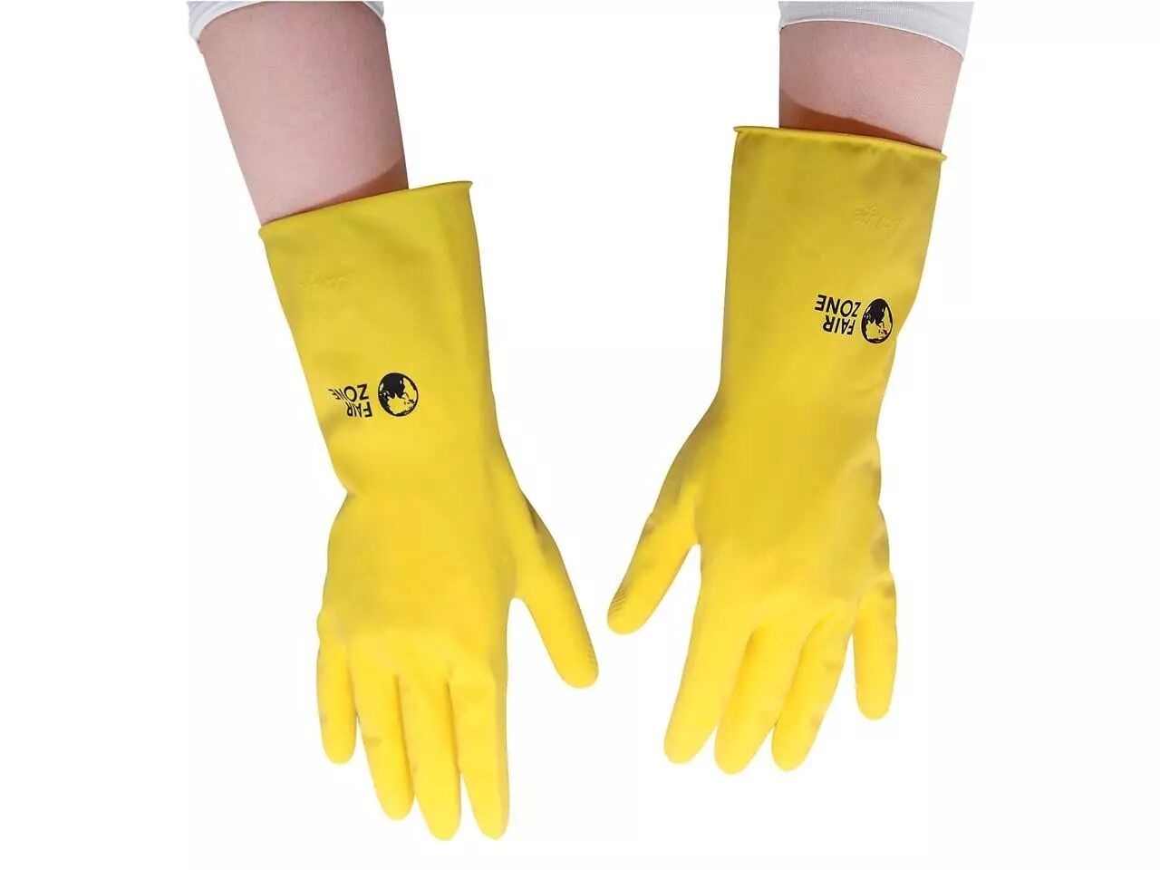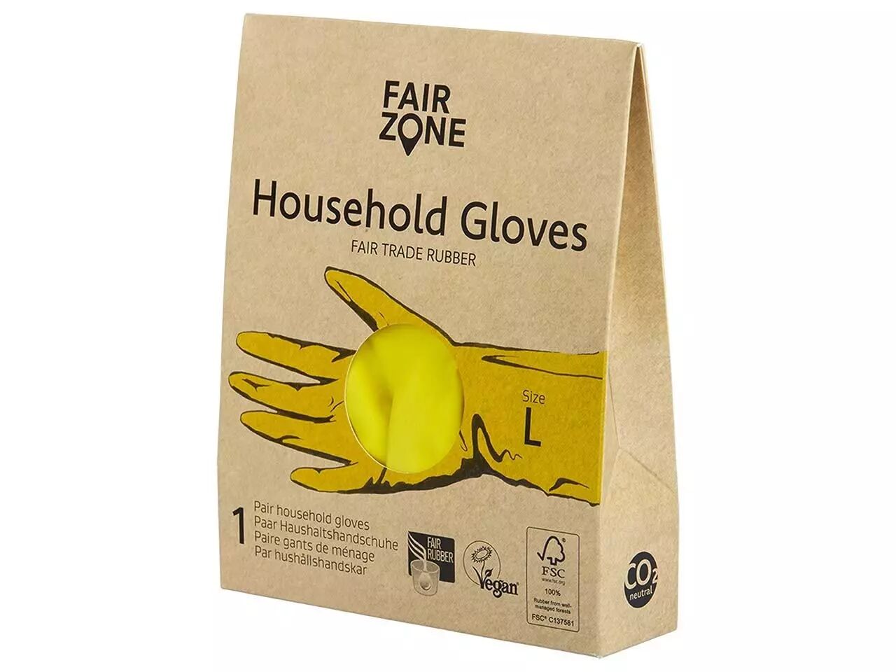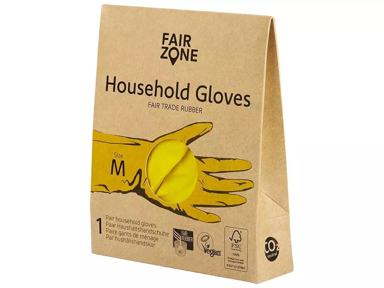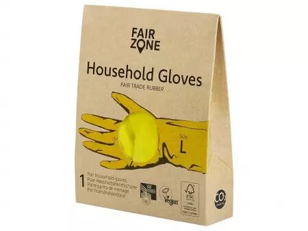 Gants de ménage en caoutchouc naturel. Les gants en caoutchouc certifié FSC® Fair Zone sont issus du commerce équitable. Ces gants de ménage classiques en caoutchouc naturel, de couleur jaune et avec flocage coton à l'intérieur, sont idéaux pour les travaux courants de nettoyage et d'entretien dans la cuisine ou la salle de bain. L'utilisation de matières premières renouvelables et issues du commerce équitable permet aux petits producteurs et aux ouvriers des pays producteurs d'avoir un avenir durable. La rémunération bonifiée du commerce équitable améliore les conditions de vie et de travail des producteurs de caoutchouc.